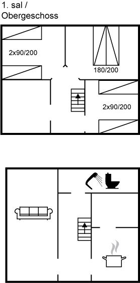 Die Schlafplätze verteilen sich auf 3 Schlafräume. 2 Schlafplätze in einem Doppelbett. 4 Schlafplätze in Einzelbetten.