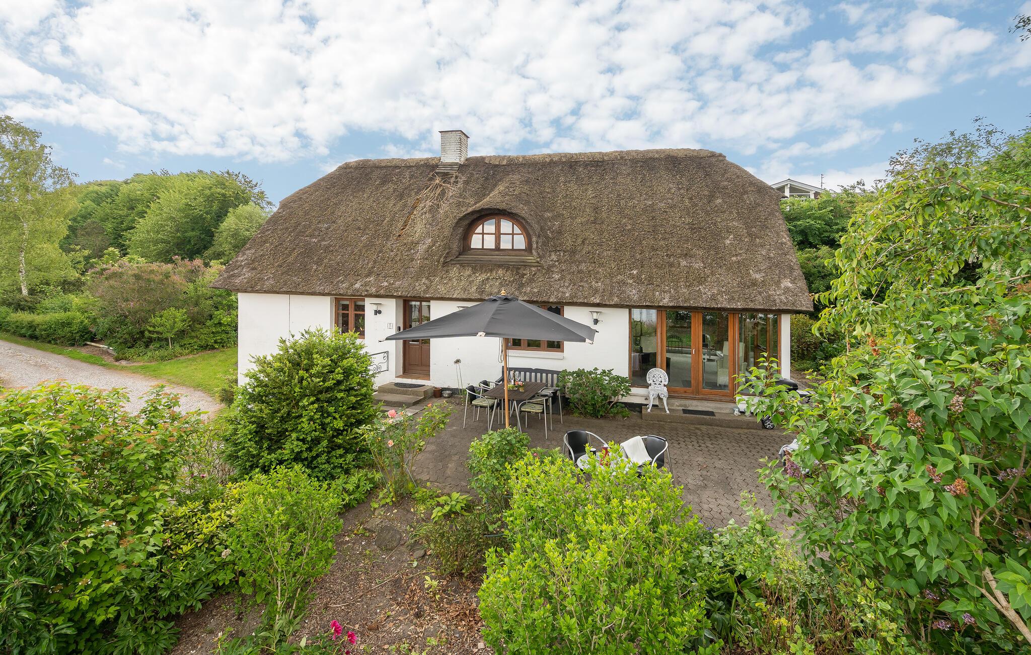 Charmantes Ferienhaus mit Reetdach und Panoramablick direkt am Mariager Fjord.