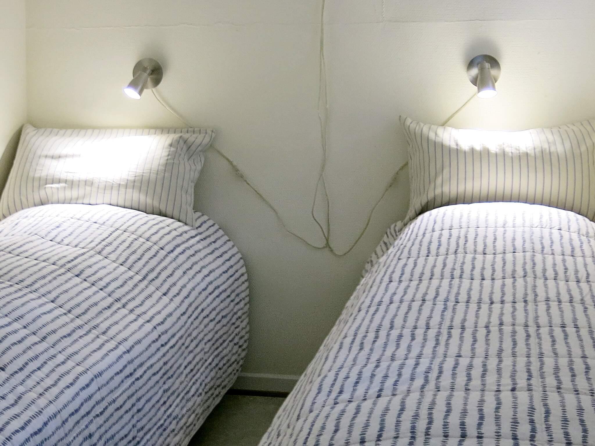 Ferienhaus nur etwa 200 m vom Strandufer und der Ostsee entfernt. Bietet Platz für bis zu sechs Personen und hat drei Schlafzimmer mit jeweils zwei Schlafplätzen in Betten.