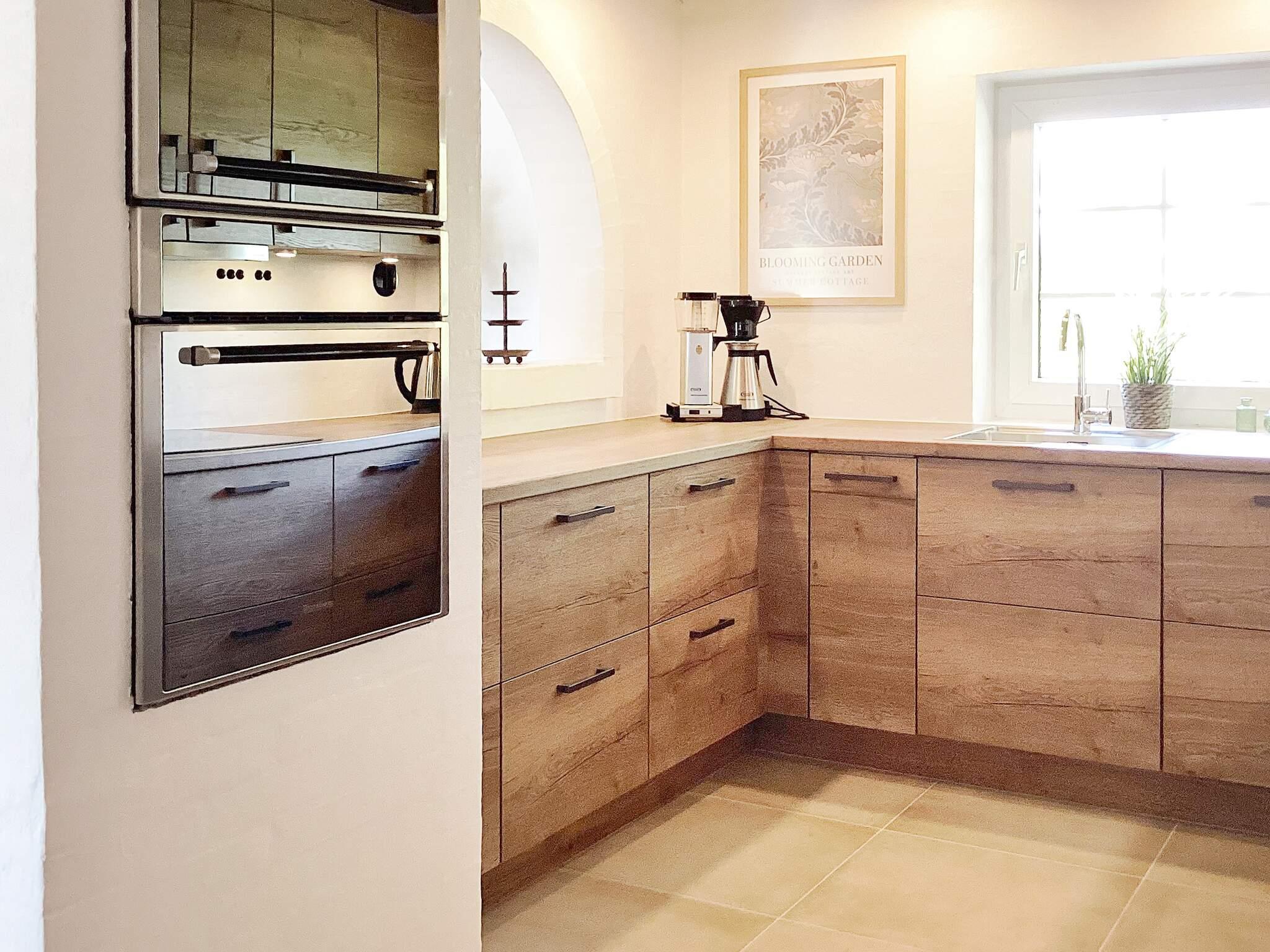 Off. Küche: E-Herd, Kühl-Gefrier-Kombi, Mikrow., Abzugsh., Kaffeem., Spülm.