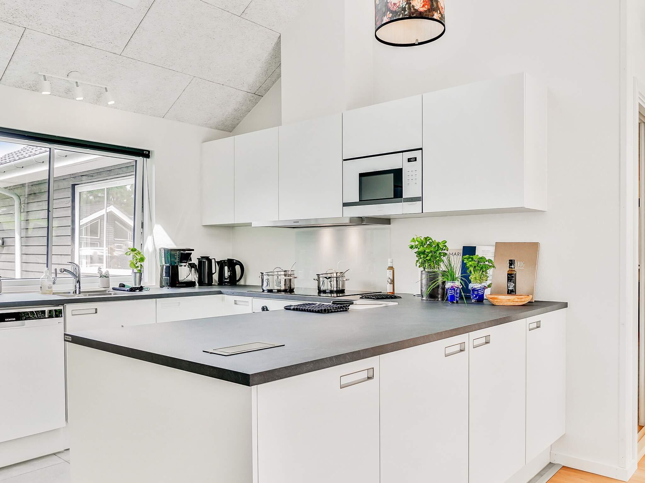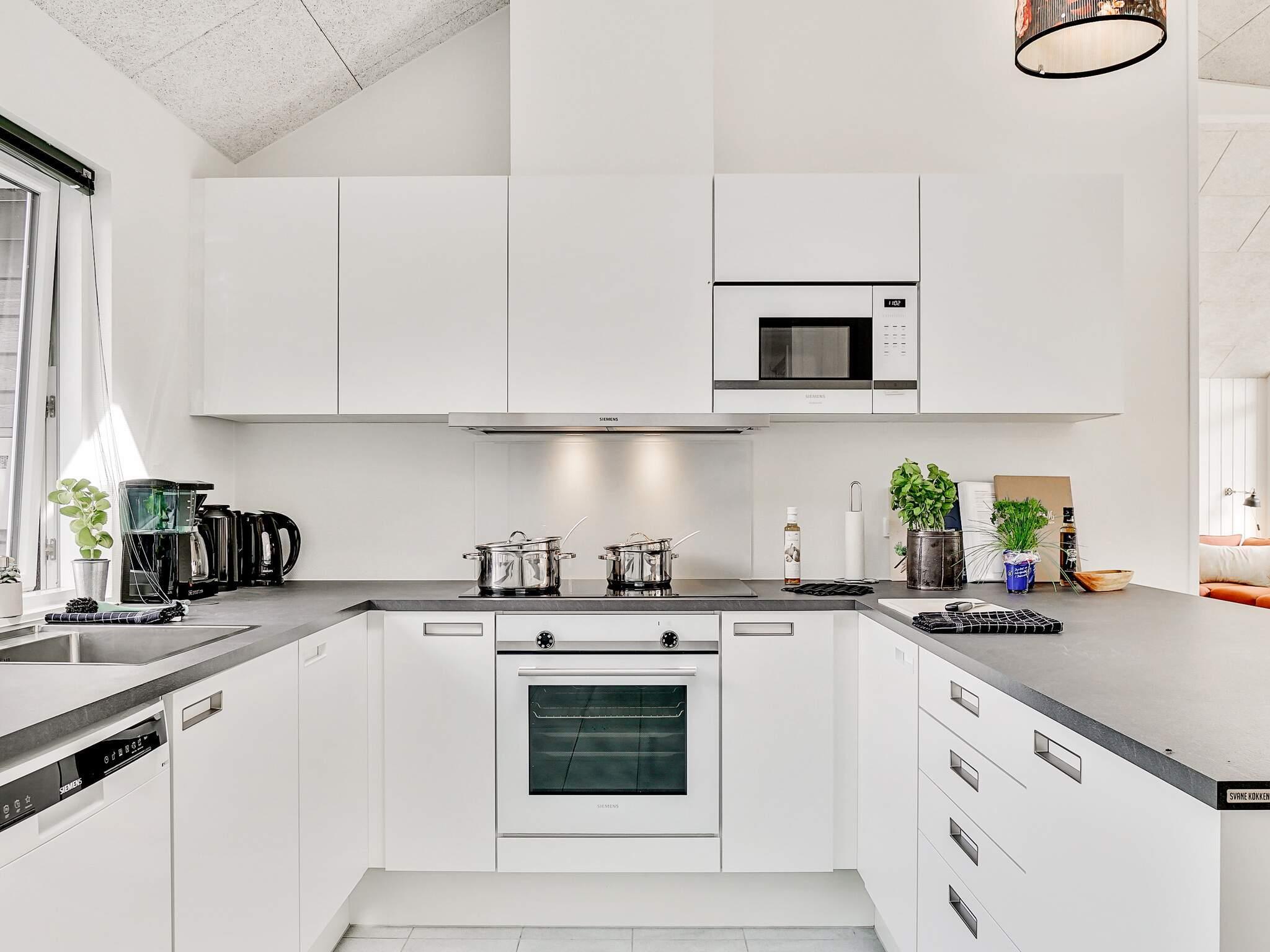 In der Mitte des Hauses befindet sich der offene Küchen-/Wohnbereich für das Familienleben. Die Küche ist gut ausgestattet und bietet ausreichen Platz zum Kochen. Davor finden am langen Esstisch alle Mitreisenden Platz.