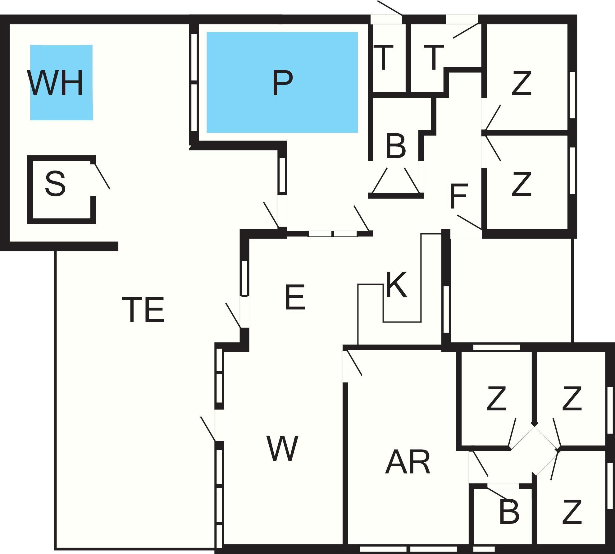 Unabhängig von der Jahreszeit kann in diesem geräumigen Ferienhaus keine Langeweile aufkommen, denn allein für den Badespaß der Familie steht ein 15 m2 großer Innenpool mit römischer Treppe und Gegenstromanlage für die Fitness bereit. Außerdem finden Sie draußen auf der Terrassenfläche einen Außen-Whirlpool sowie eine Sauna für Entspannung und Erholung. Relaxen Sie hier ausgiebig mit Ausblick zur Natur oder vielleicht zum nächtlichen zum Sternenhimmel!