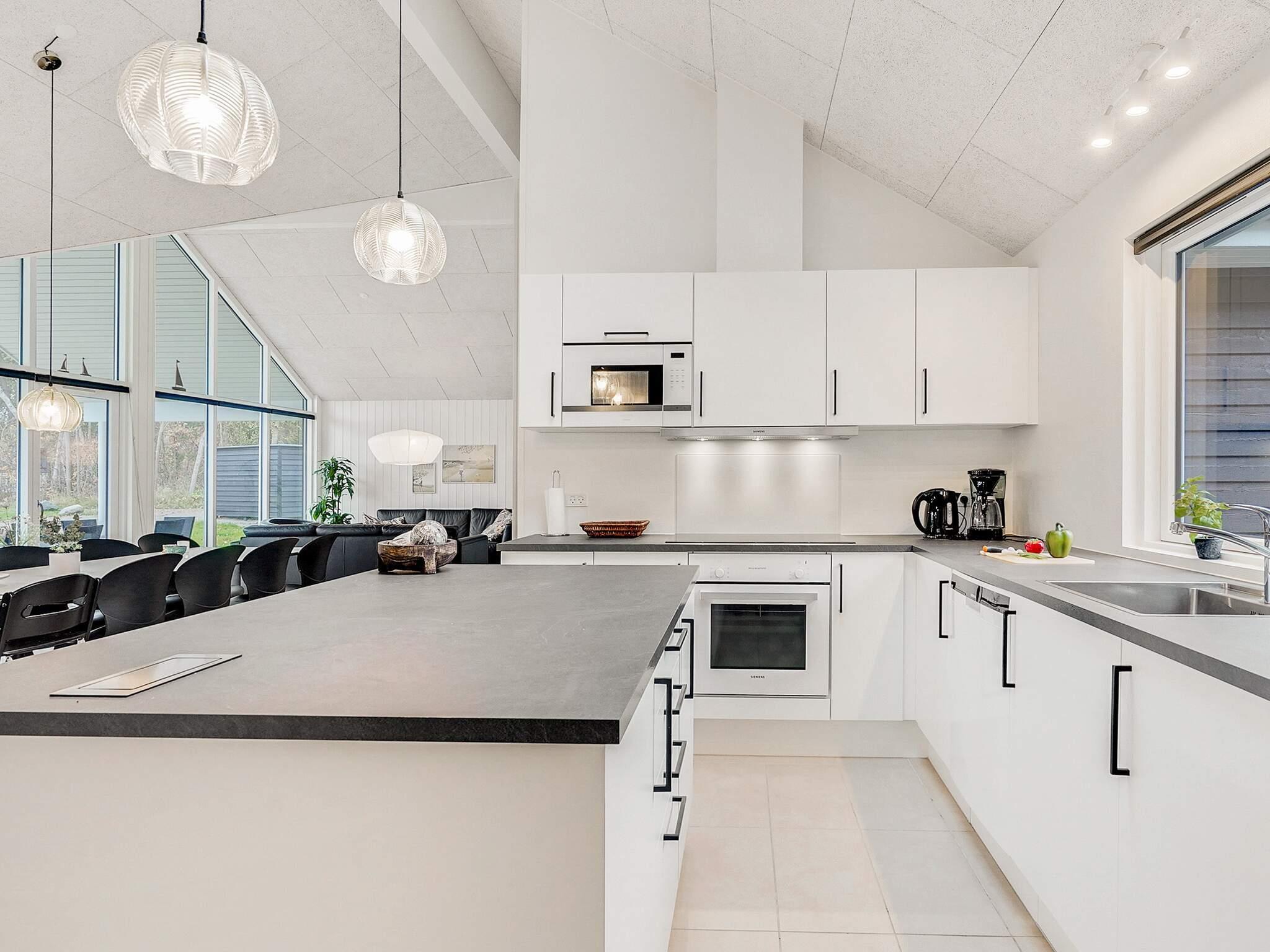 Den Mittelpunkt des Hauses bildet der geräumige, offene Küchen-/Wohnbereich mit umfassender Ausstattung, darunter doppeltem Backofen, Geschirrspüler und Kühlschrank sowie WLAN und TV. Neben reichlich Platz für die fleißigen Köche gibt es auch viel Platz am langen Esstisch vor dem Holzofen, wo es sich die ganze Familie gemütlich machen kann.