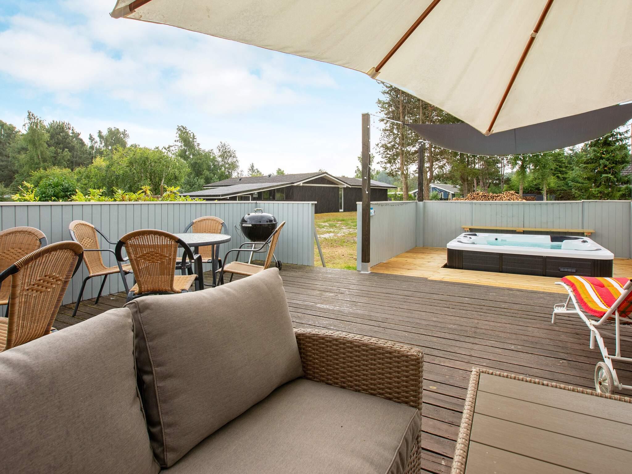 Auf der großen Holzterrasse können Sie grillen und sonnenbaden. Der große Whirlpool im Freien ist für max. 6 Personen geeignet. Das Naturgrundstück bietet zudem viel Platz für Spiel, Sport und Spaß.