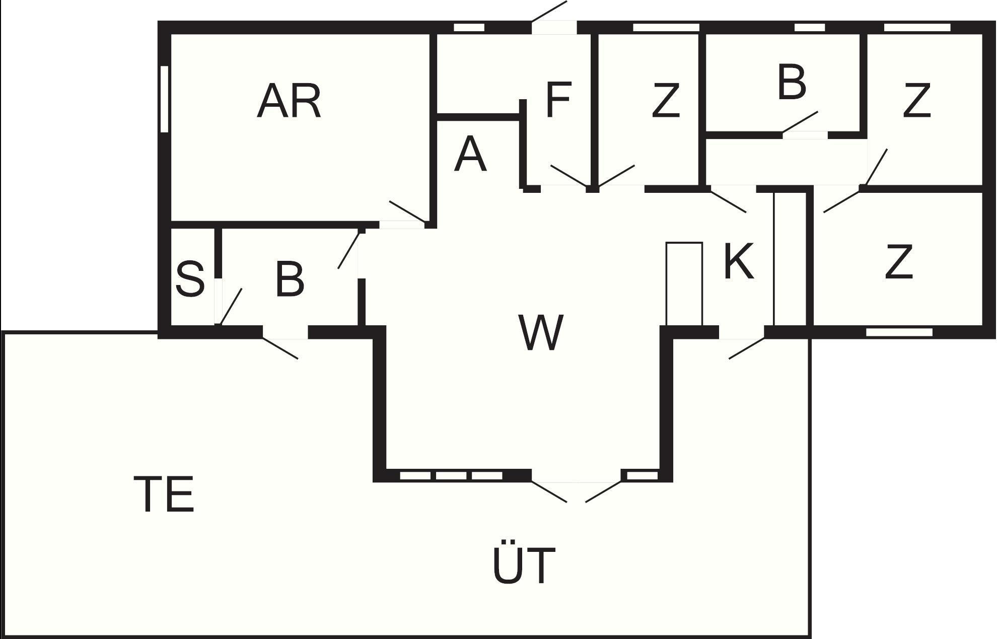 Bad: WC, Waschb., Dusche, Fußbodenheiz.