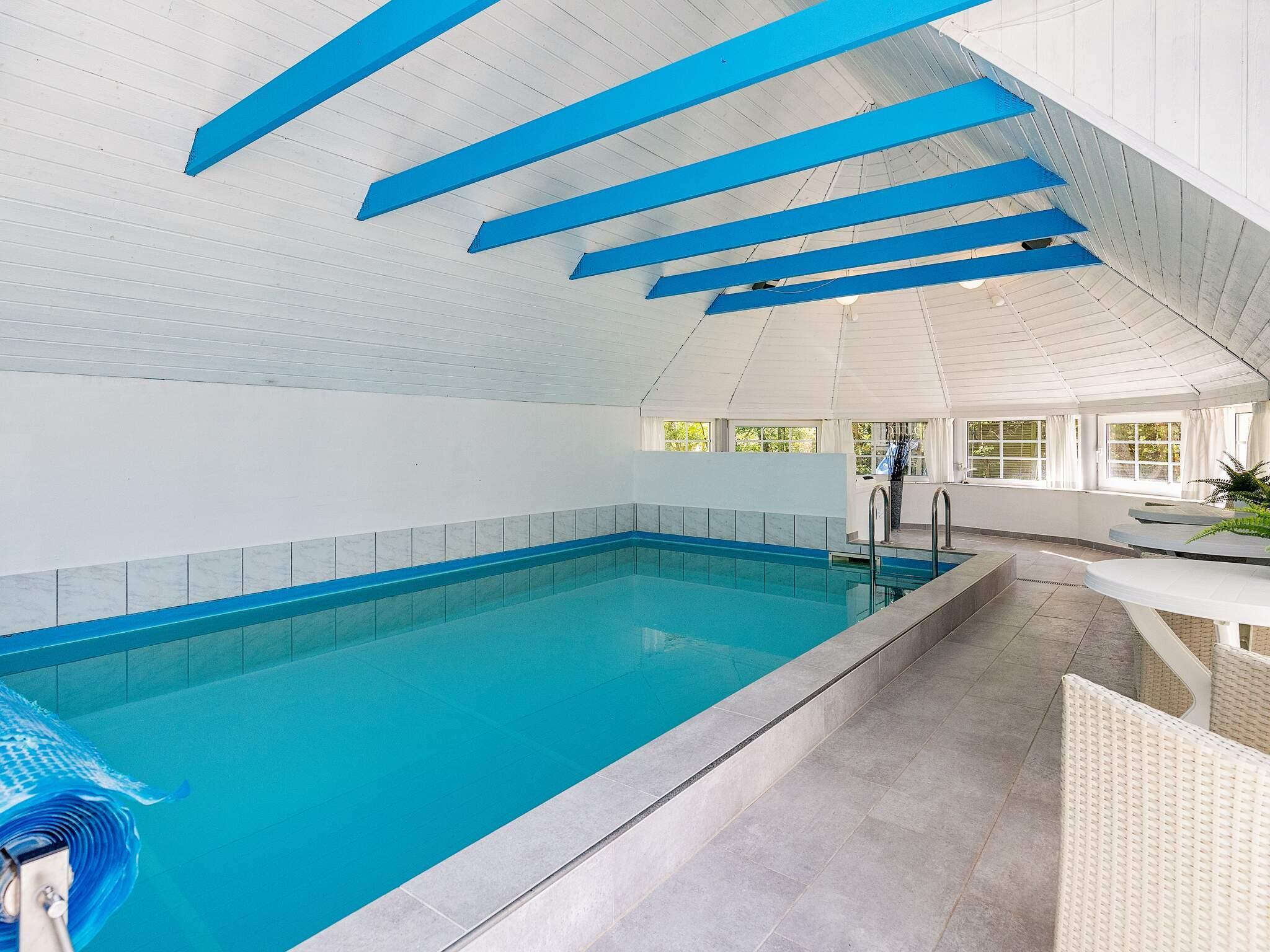 Innen erwartet Sie hier ein ansprechender Poolbereich mit einem 18 m² Swimmingpool, einem Whirlpool für bis zu 4 Personen sowie einem Badezimmer mit Duschnische und Fußbodenheizung. Es wurde eine energiesparende Wärmepumpe installiert.