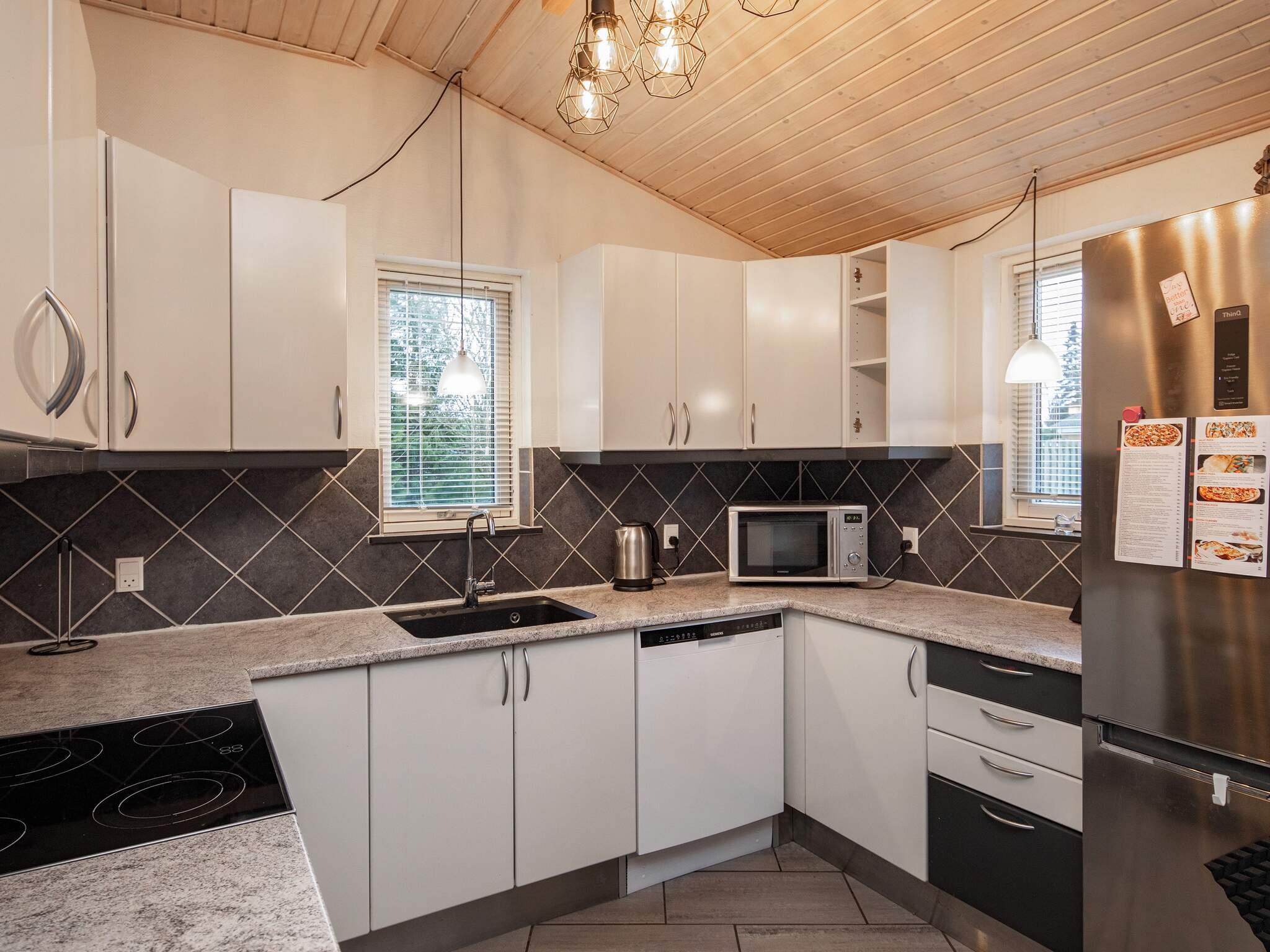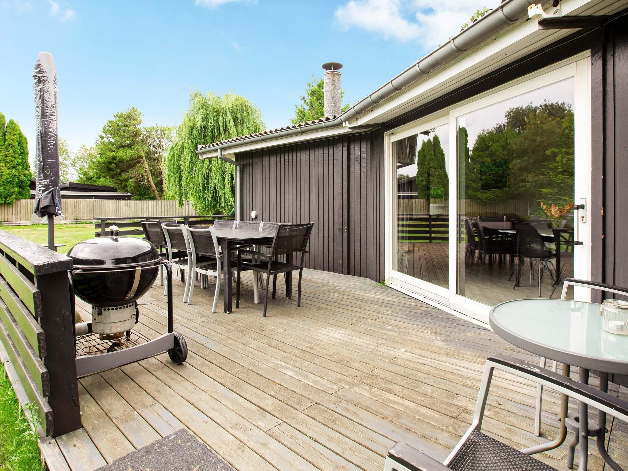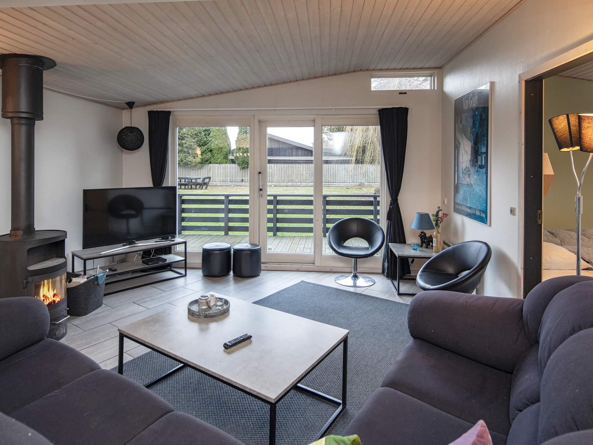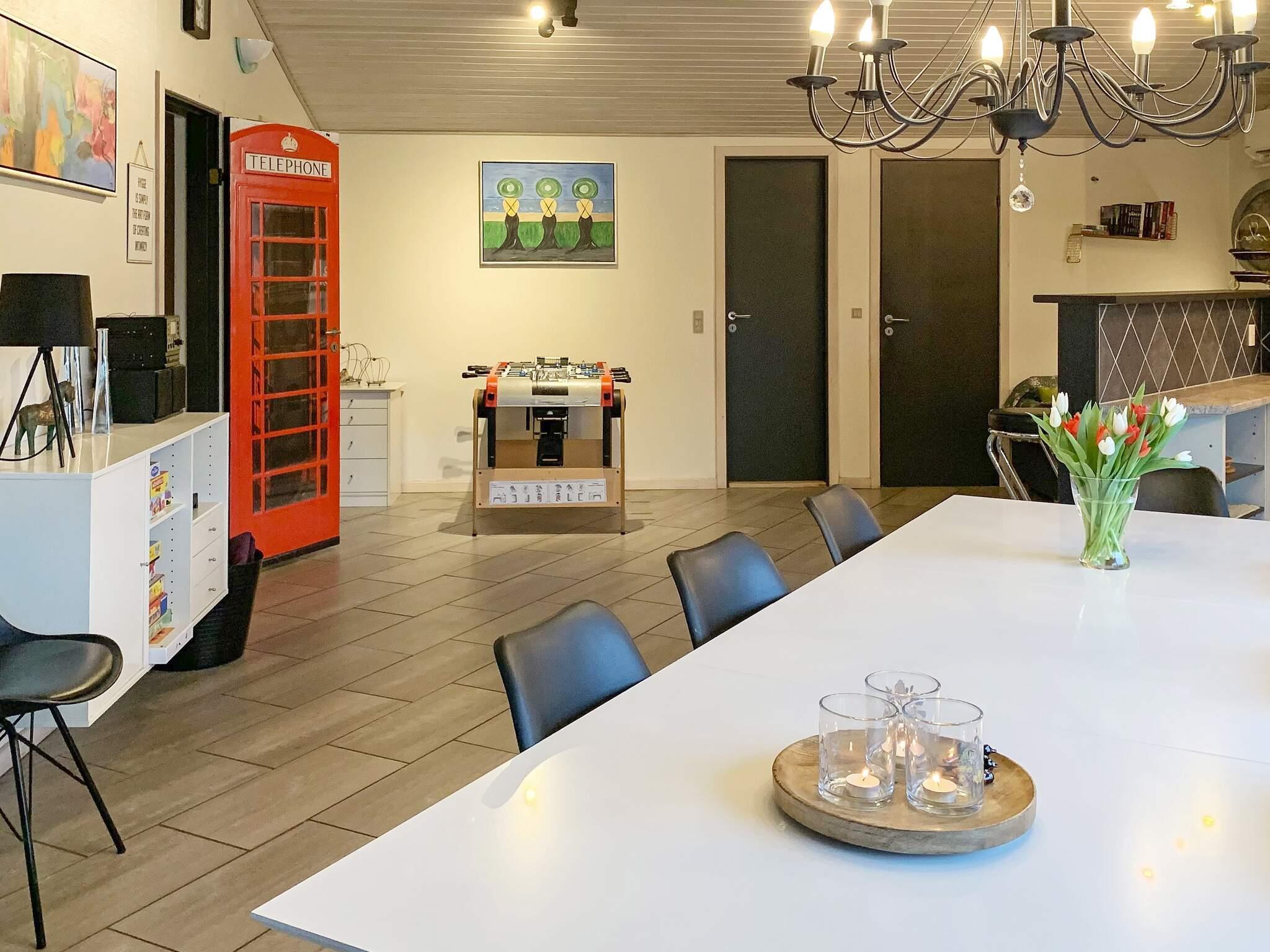 Herzstück des Hauses ist der offene Wohnküchenbereich mit Ess- und Sitzecke für das Familienleben. Das Haus verfügt außerdem über vier Schlafzimmer mit insgesamt zehn Betten. Das Ferienhaus ist für die ganzjährige Nutzung isoliert und mit einer komfortablen Fußbodenheizung ausgestattet. Es gibt sowohl einen gemütlichen Holzofen als auch eine klimafreundliche Wärmepumpe. Neben WC und Dusche bietet das große Badezimmer sowohl einen Whirlpool als auch eine Sauna für Wellness und Entspannung. Im Nebengebäude befindet sich ein Aktivitätsraum mit Billard, Tischtennis und Darts für Freizeitspaß. Der Raum ist bequem über die überdachte Terrasse erreichbar.
