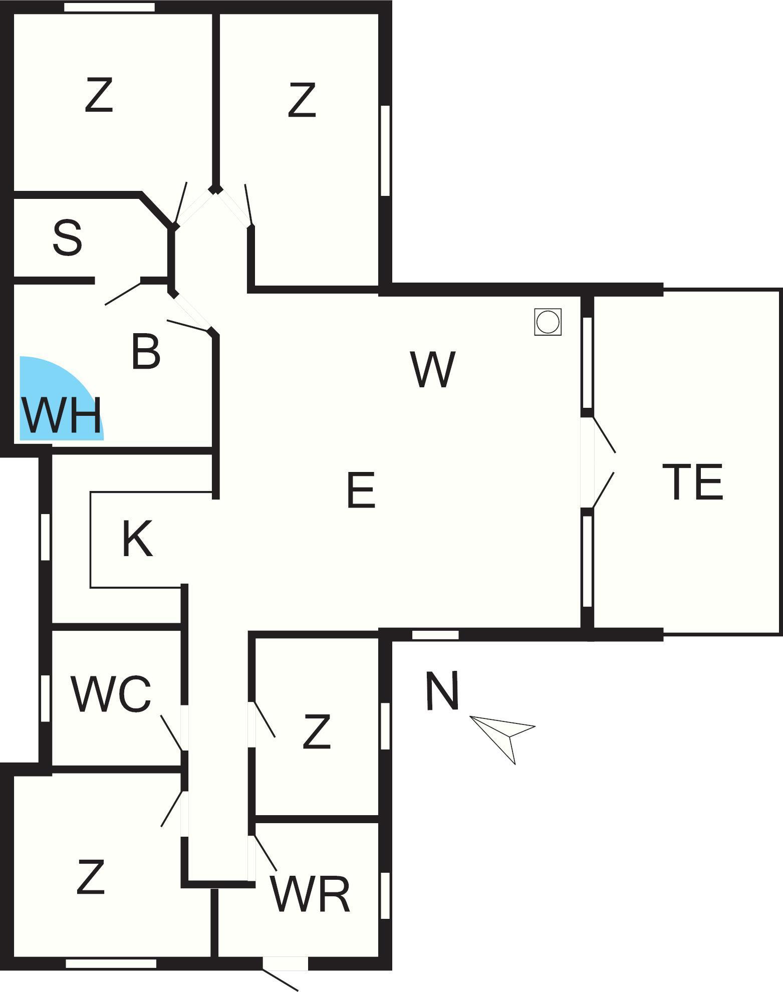 Off. Küche: E-Herd, Kühlschr. m. Gefrierfach, Gefriertruhe 1-59 l., Mikrow., Abzugsh., Kaffeem., Spülm., Waschm, Trockner
