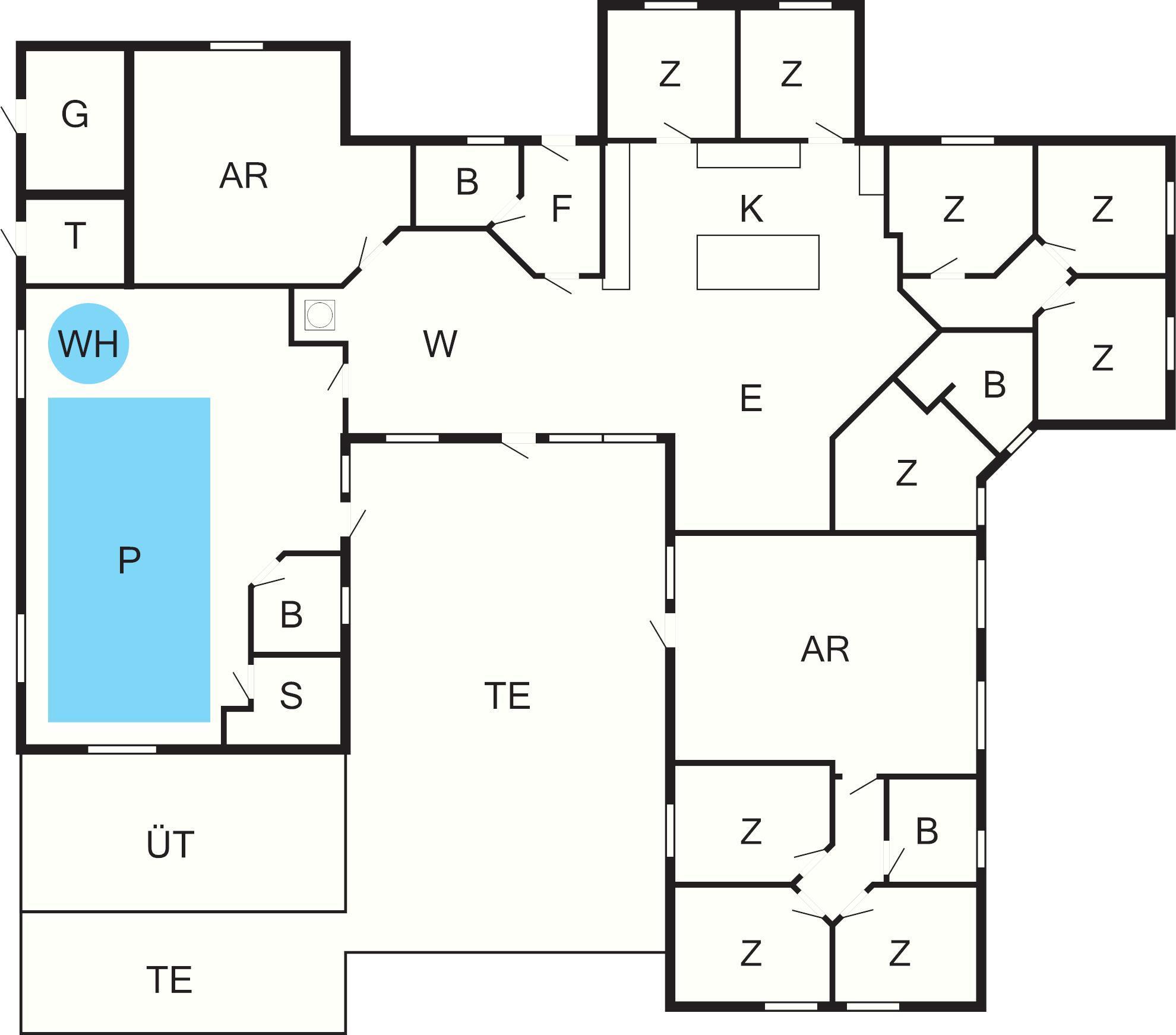 Im Inneren des Hauses findet man eine komplette, zeitgemäße Ausstattung, sowohl im Küchenbereich als auch im Wohnzimmer. Es stehen ganze vier Bäder mit angenehmer Fußbodenheizung zur Auswahl. Ein Bad findet man gleich im Anschluss an den Poolbereich. Auch an das Wohlbefinden der jüngsten Gäste wurde mit Kinderbett, Hochstuhl, Schaukel und Sandkasten gedacht.