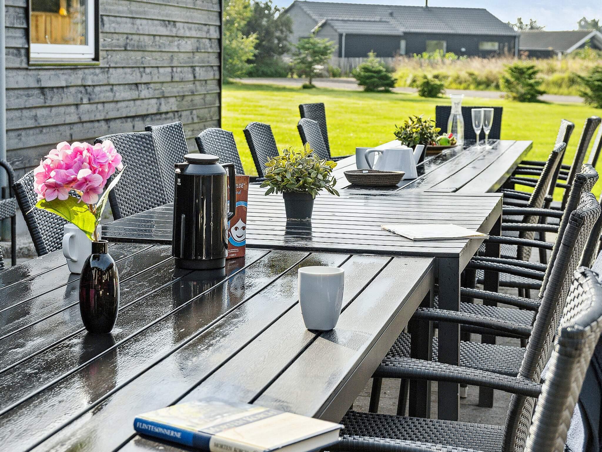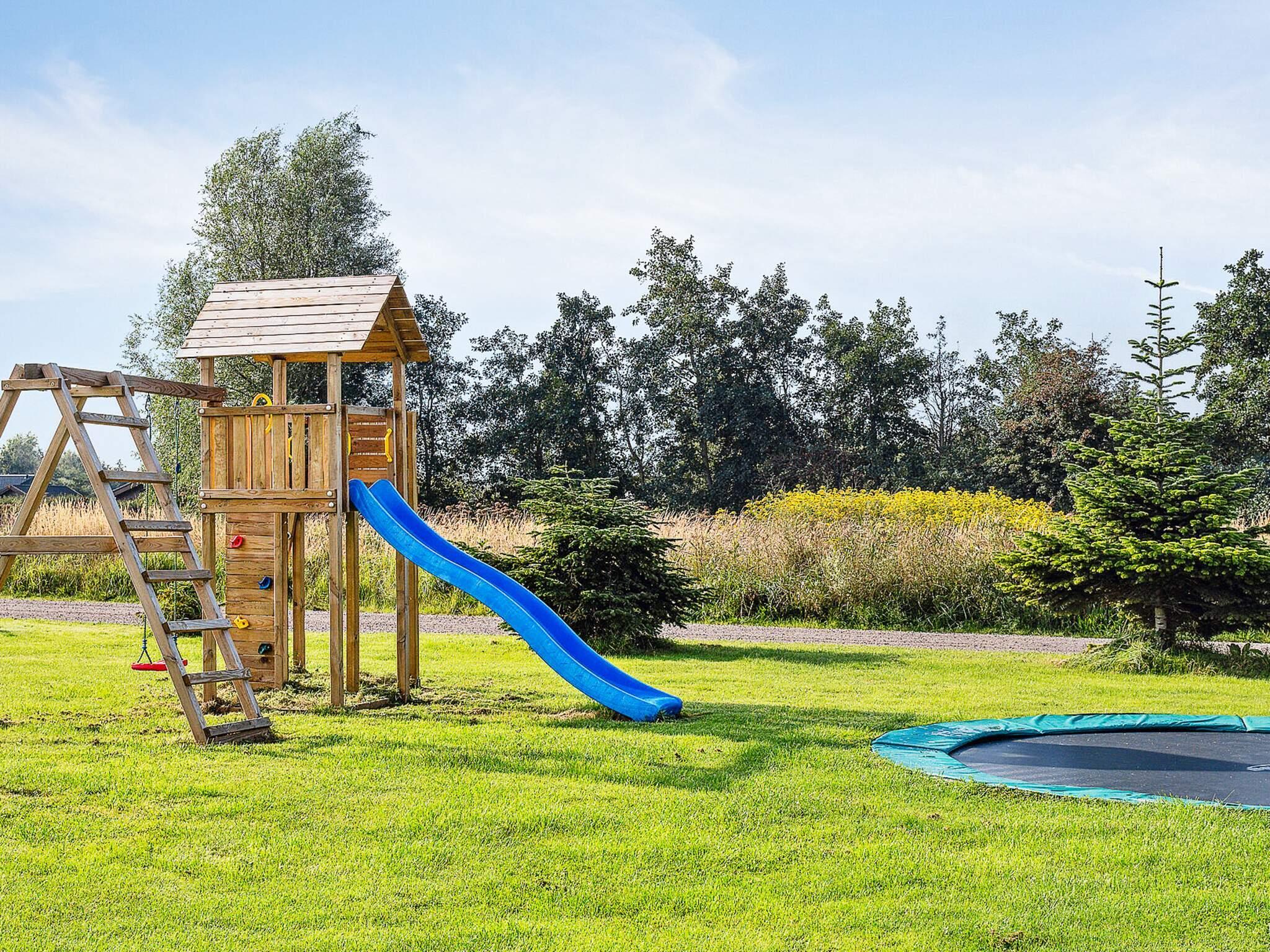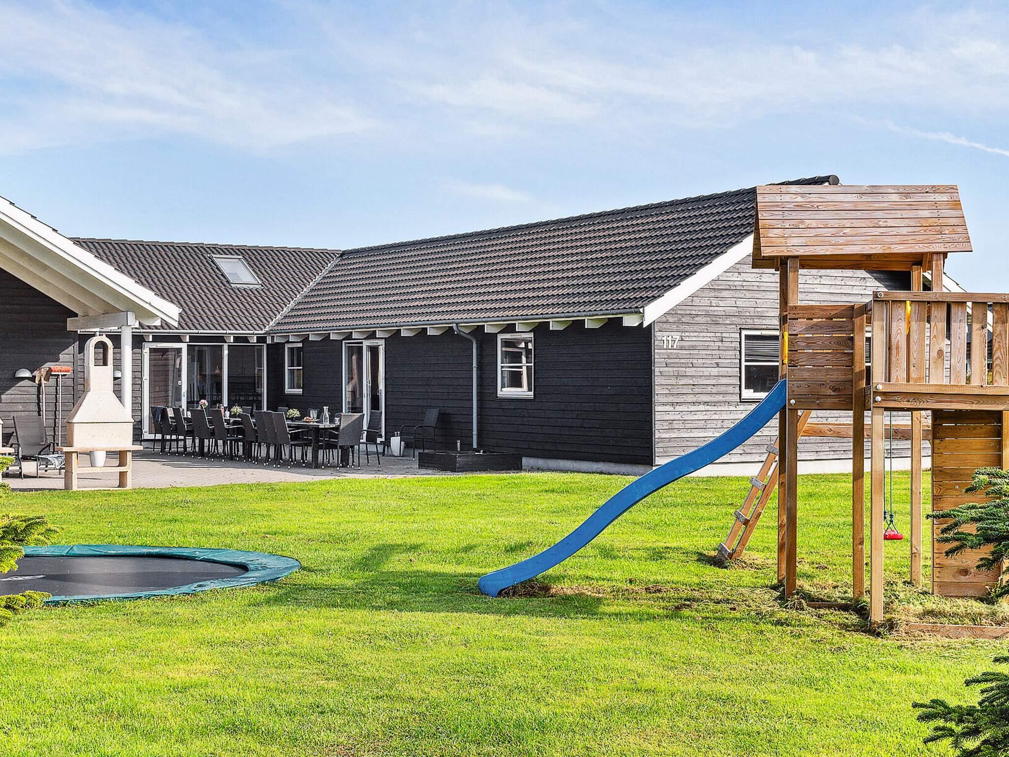 Im Außenbereich gibt es insgesamt 200 m² Terrassenfläche für Sonnentage sowie eine 24 m² überdachte Terrassenfläche, ideal für gemütliche Grillabende. Das 3.000 m² große Grundstück mit Rasen bietet reichlich Spielfläche für alle Mitreisenden. Für die Kinder stehen Kletterturm und Gartentrampolin bereit (Nutzung nur auf eigenes Risiko!).