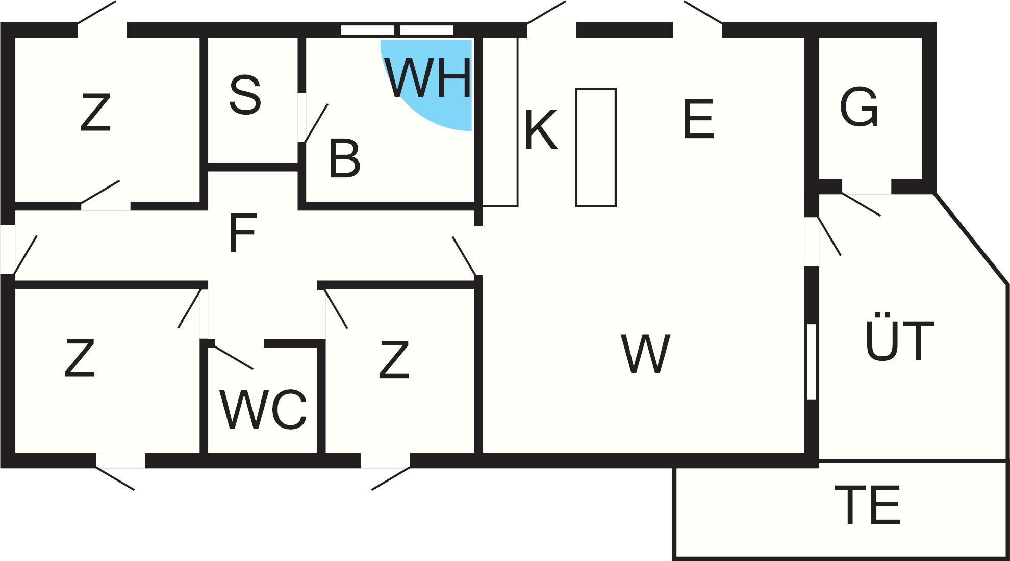 Bad: WC, Waschb., Dusche, Fußbodenheiz.