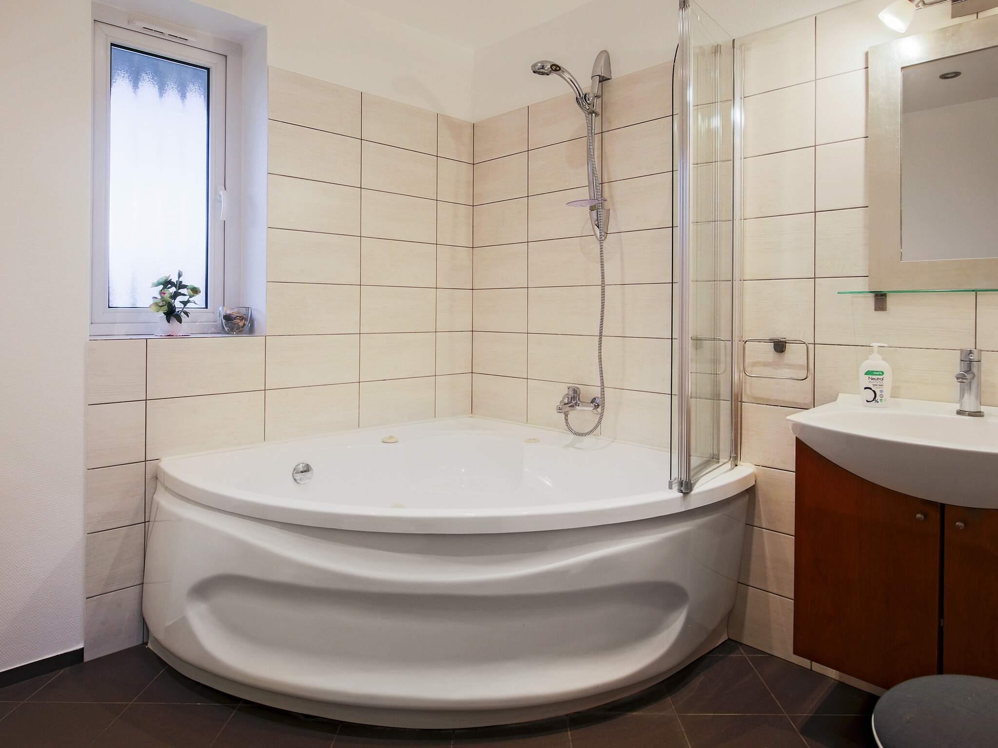 Bad: Waschm., WC, Waschb., Dusche, Fußbodenheiz.