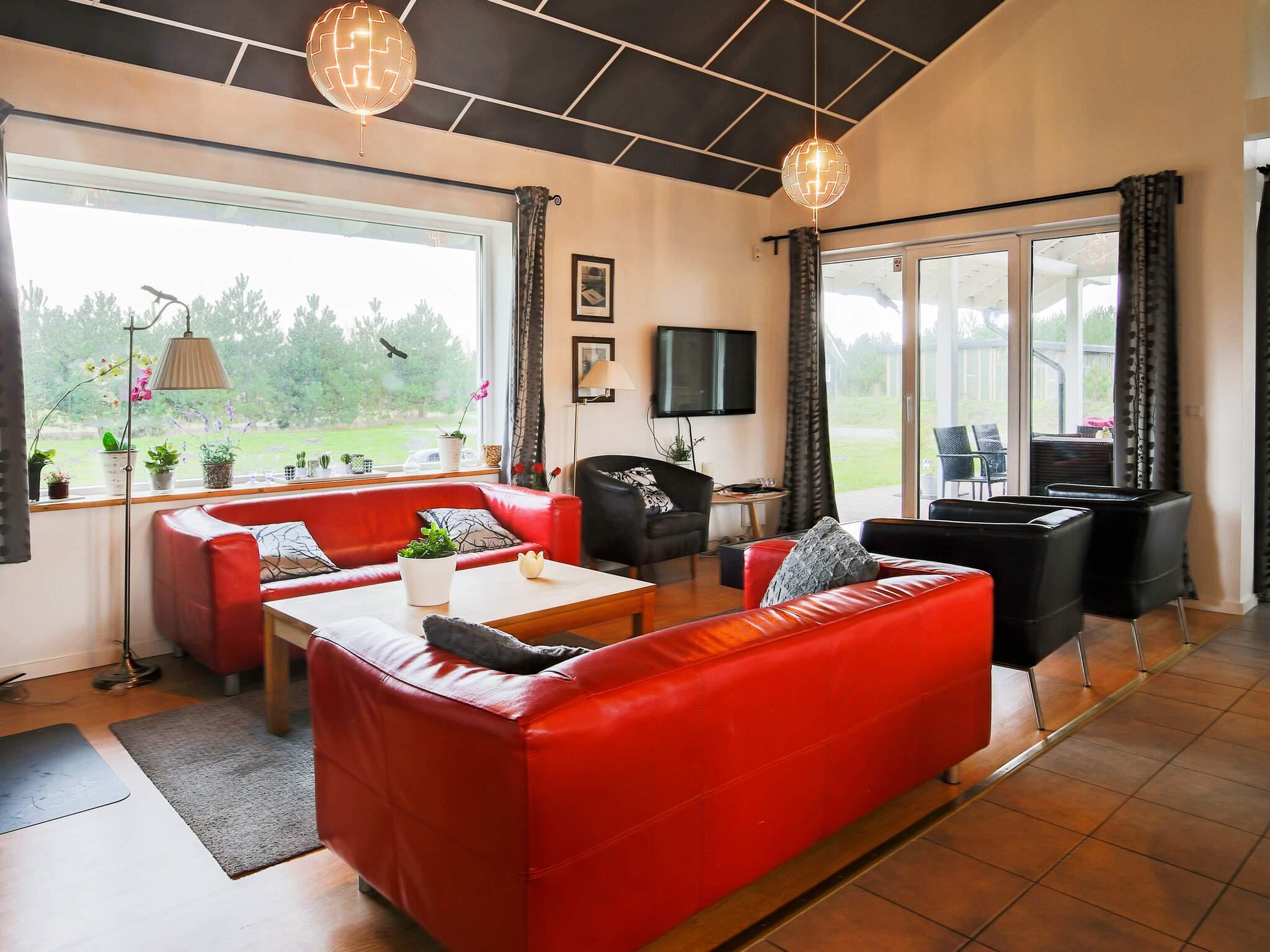 Das Ferienhaus ist modern eingerichtet und bietet viel Platz für die ganze Familie im offenen Küchen-/Wohnbereich. Die Küchenausstatung ist umfassend, vom Wohnbereich hat man Ausblick zur Holzterrasse und weiter zum großen Rasengrundstück. Zur technischen Ausstattung im Haus gehören auch deutsche TV-Sender zur Auswahl im TV sowie WLAN. Darüber hinaus gibt es eine energieeffiziente Luft-Luft-Wärmepumpe sowie einen Holzofen für kühlere Abende. Für den Freizeitspaß stehen Flippermaschine und Tischkicker bereit.