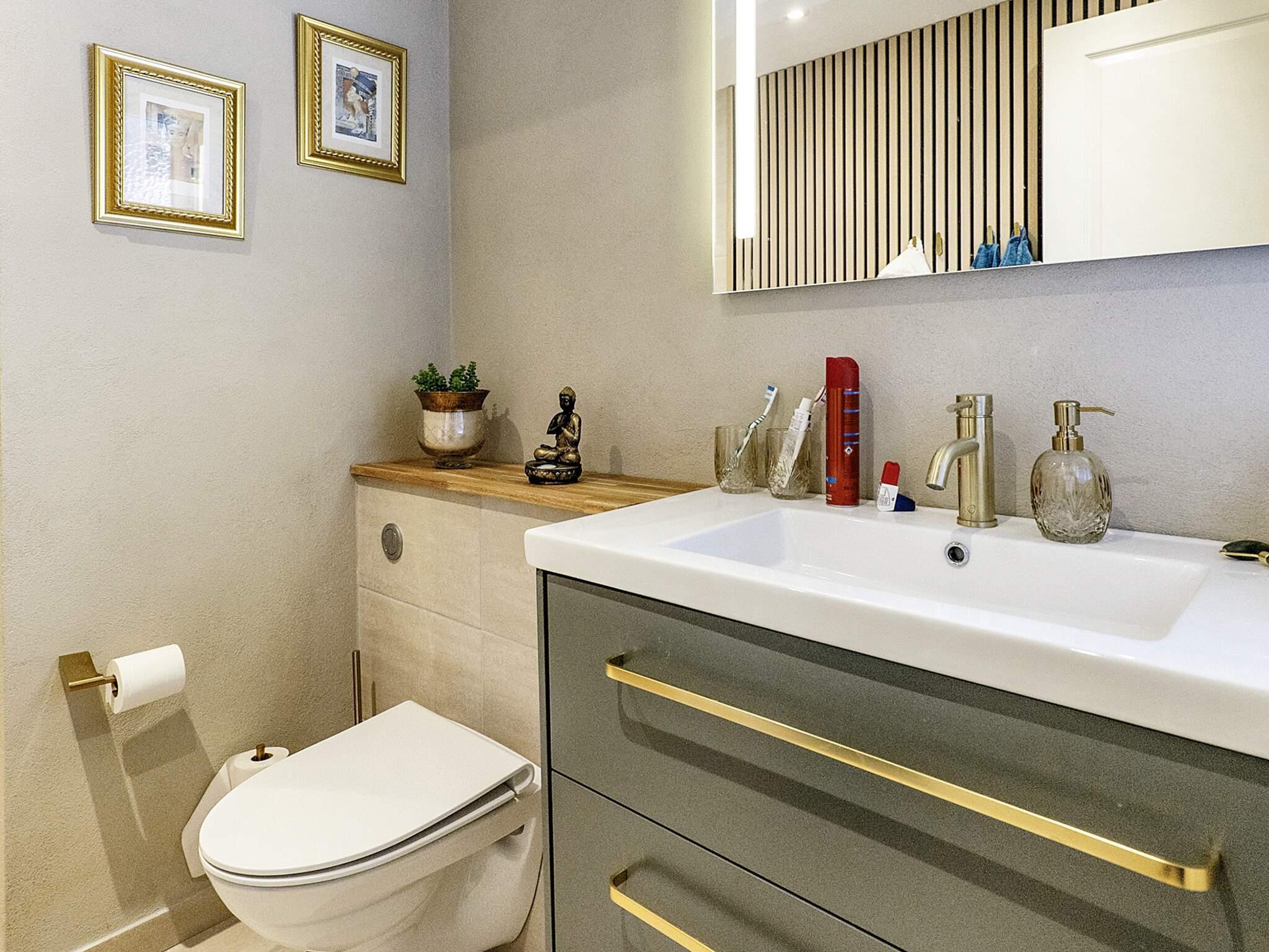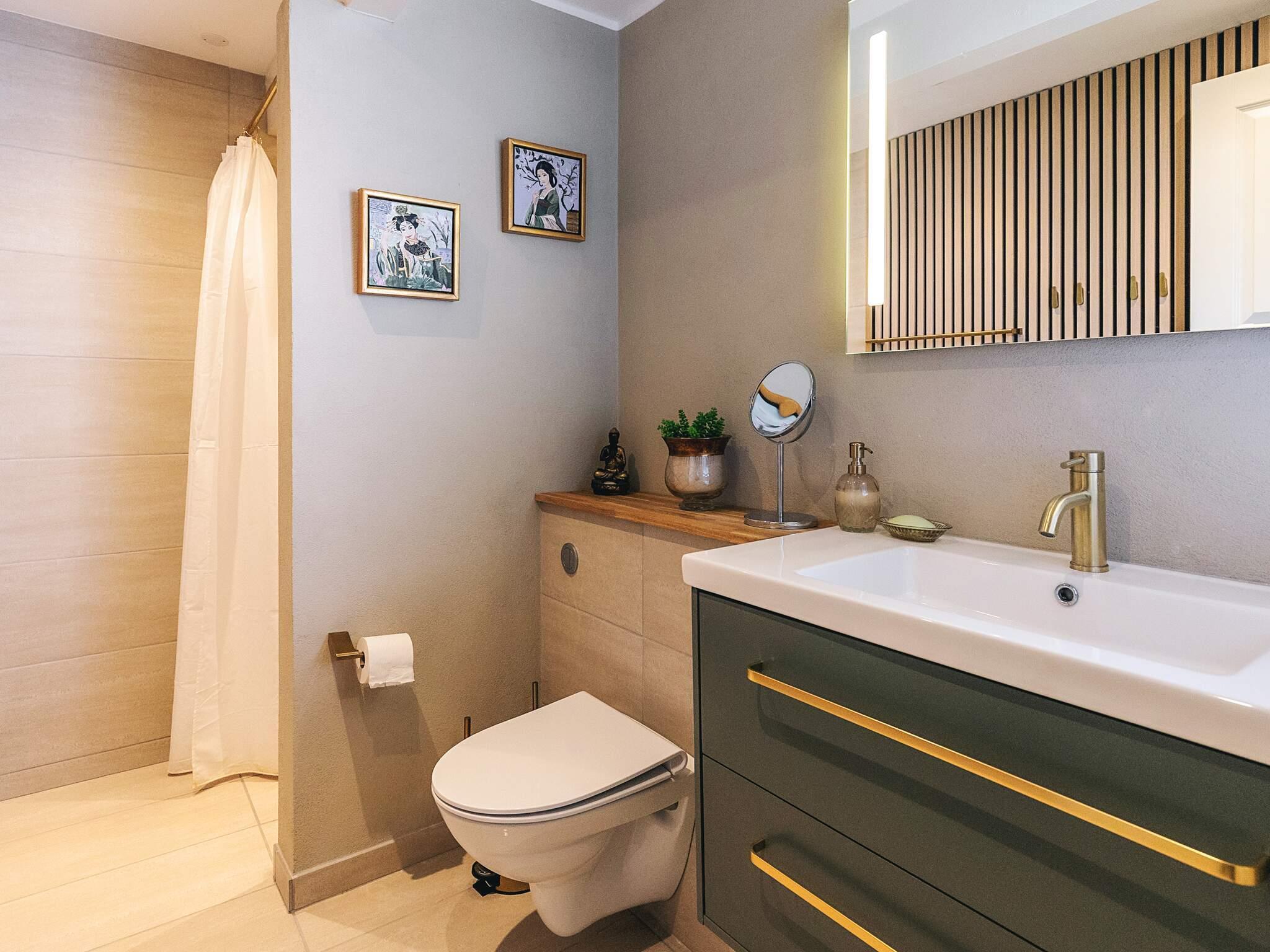 Im Obergeschoss bietet die erste Etage vier Schlafplätze, darunter ein Doppelbett und zwei Einzelbetten, und ist somit ideal für Kinder oder weitere Familienmitglieder. Sowohl das Wohnzimmer als auch das Schlafzimmer im Erdgeschoss verfügen über Fernseher mit deutschen Sendern. Kostenloses WLAN ist im gesamten Haus verfügbar. Die Elektroheizung sorgt zu jeder Jahreszeit für einen gemütlichen Aufenthalt und ermöglicht so ganzjährigen Genuss.