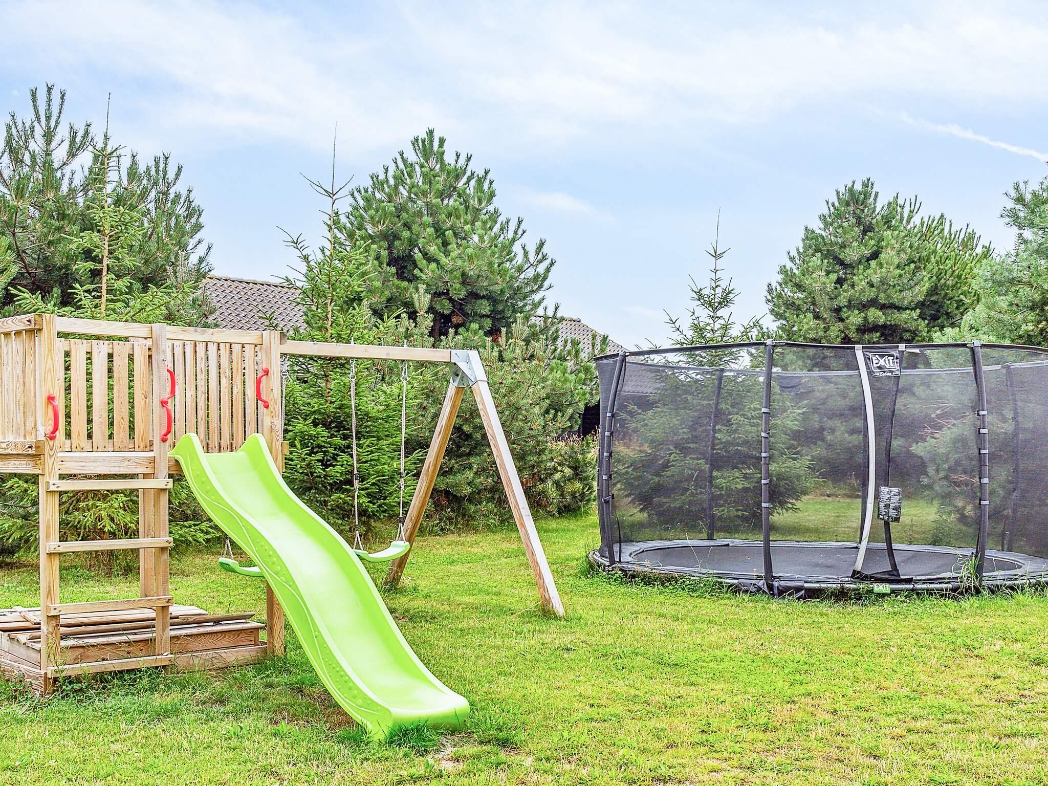 Von der Küche aus gelangen Sie direkt auf die teilweise überdachte Terrasse des Ferienhauses mit Grill und Gartenmöbeln – ideal für einen gemütlichen Grillabend oder zum Entspannen in der Sommersonne. Im Garten gibt es eine Schaukel, einen Sandkasten, einen Spielturm, Fußballtore, ein Rebounder und ein Trampolin für die Kinder (Benutzung auf eigene Gefahr/Versicherung). Das Haus befindet sich auf einem abgeschlossenen und ungestörten Grundstück am Ende einer gesperrten Straße.