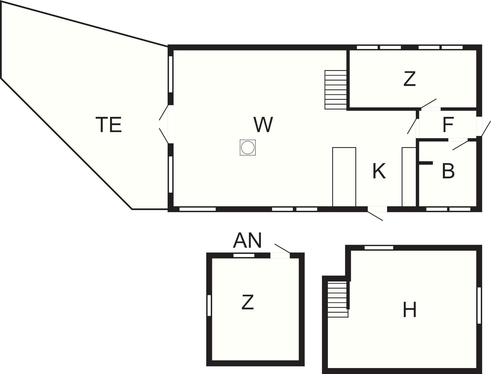 Das Nebengebäude verfügt über zwei Einzelbetten, die bei Bedarf zu einem Doppelbett zusammengeschoben werden können. Das Nebengebäude ist nicht isoliert, verfügt aber über einen Heizkörper als Wärmequelle für kalte Wintertage und die Möglichkeit einer solarbetriebenen Lüftung für heiße Sommertage. Das Nebengebäude ist nur wenige Meter von der Küchentür entfernt.