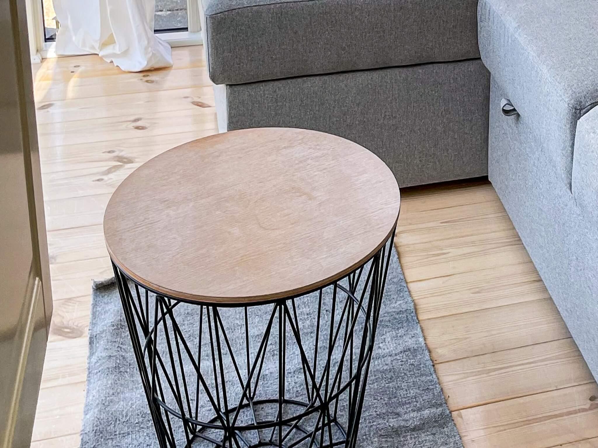 Das Ferienhaus verfügt über eine helle Küche mit Induktionskochfeld, Kühlschrank mit kleinem Gefrierfach und Kaffeemaschine, 1 Schlafzimmer mit einem Doppelbett und ein Schlafsofa für 2 Personen im Wohnzimmer.