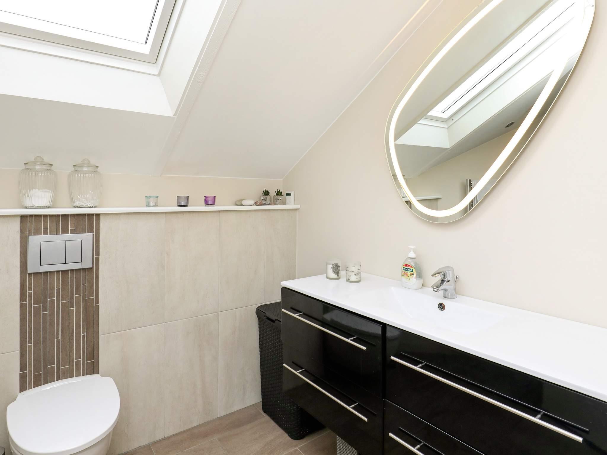 Bad: WC, Waschb., Dusche, Fußbodenheiz.