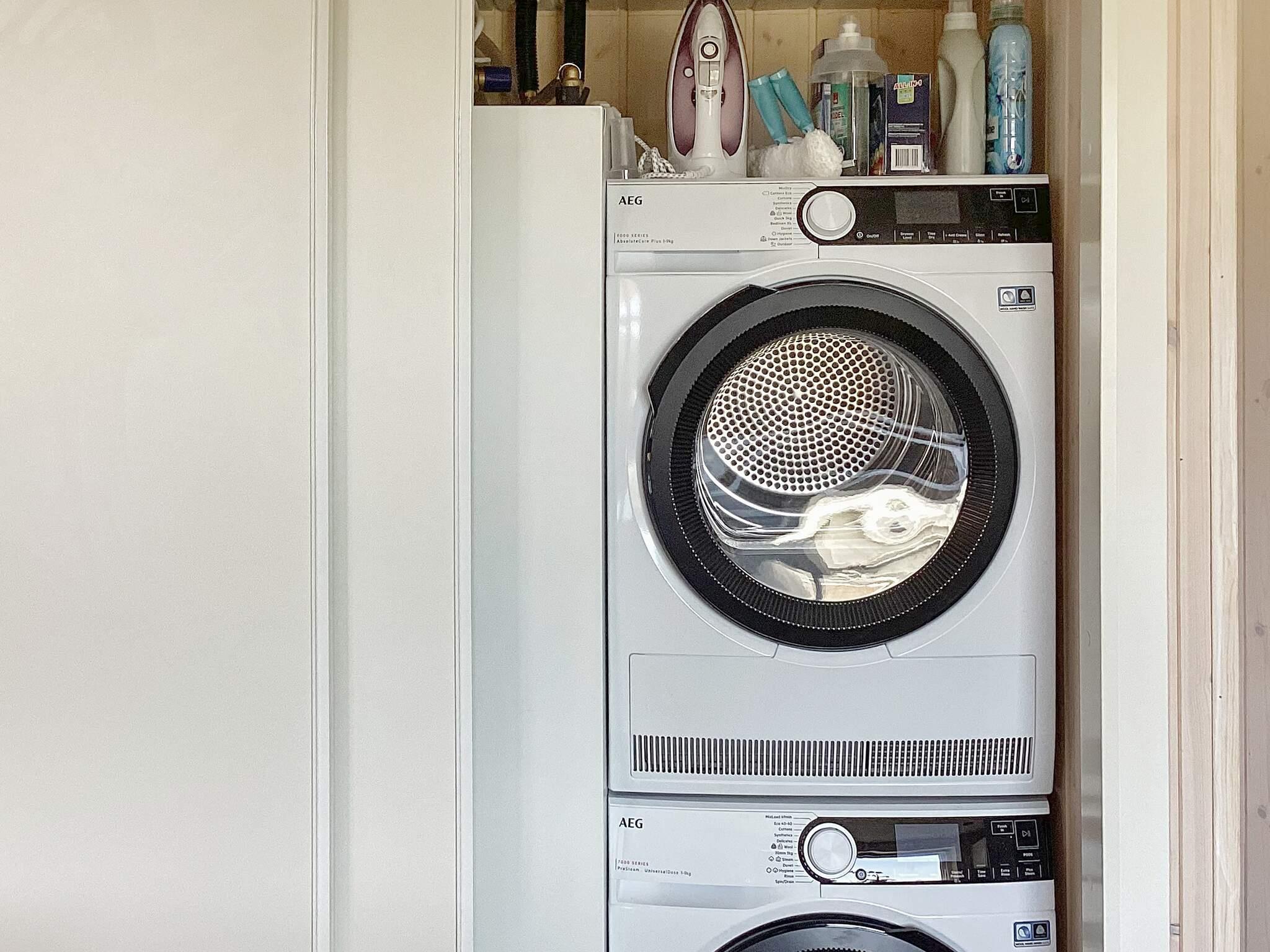 Küche: Ofen, Kühlschr., Mikrow., induktionskomfur, Kaffeem., Spülm., Waschm, Trockner