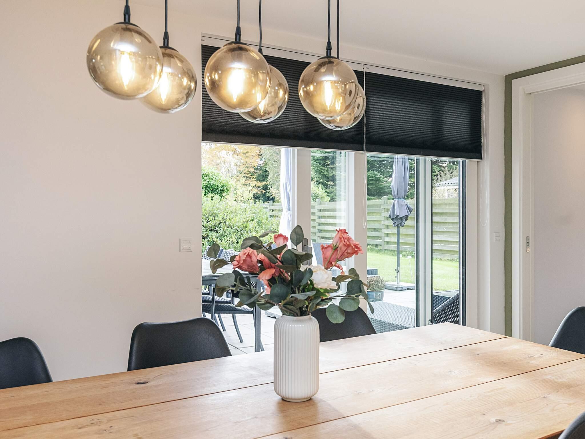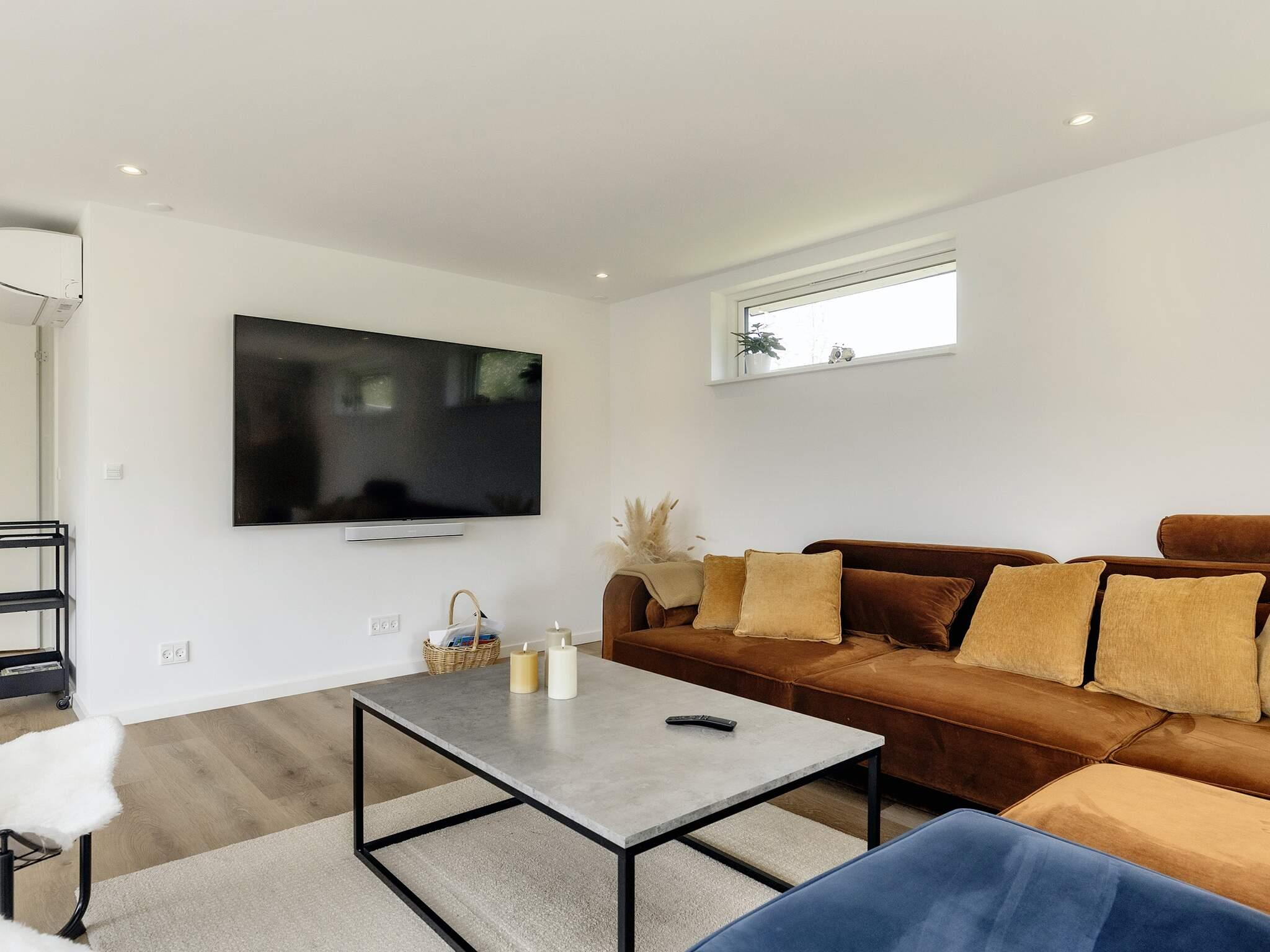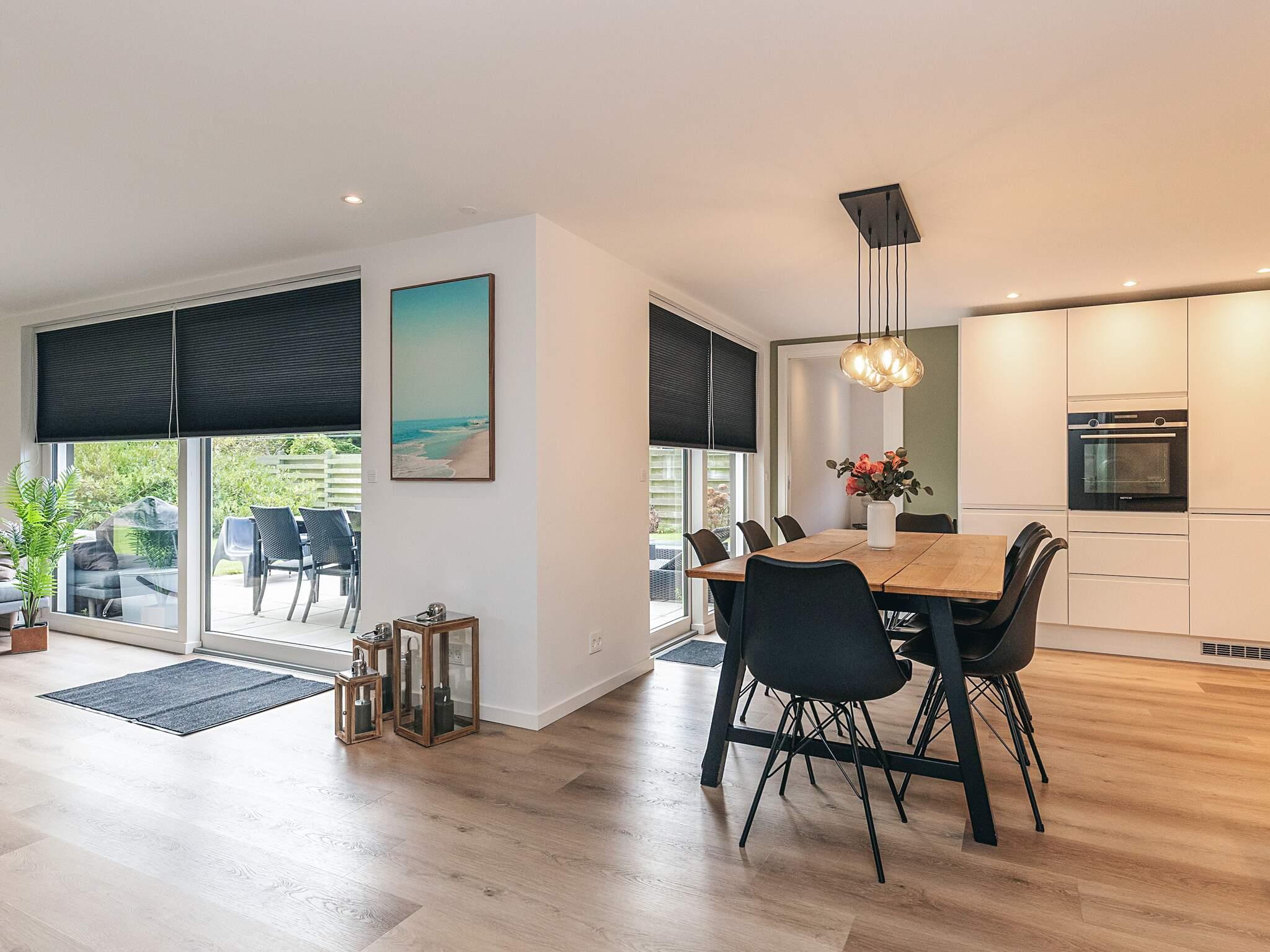 Die Küche ist offen gestaltet und verfügt über moderne Geräte wie einen Quooker, ein 90-cm-Induktionskochfeld, einen Geschirrspüler, einen Einbaubackofen, eine Dunstabzugshaube, einen Kühlschrank und einen Gefrierschrank. Das helle Wohnzimmer verfügt über große Schiebetüren zur großen Terrasse und bietet einen 72-Zoll-Smart-TV, einen Holzofen, verschiedene Spiele und ein großes Sofa zum Entspannen. Für kleine Kinder gibt es einige Spielsachen im Haus und einen Bollerwagen zur kostenlosen Nutzung.