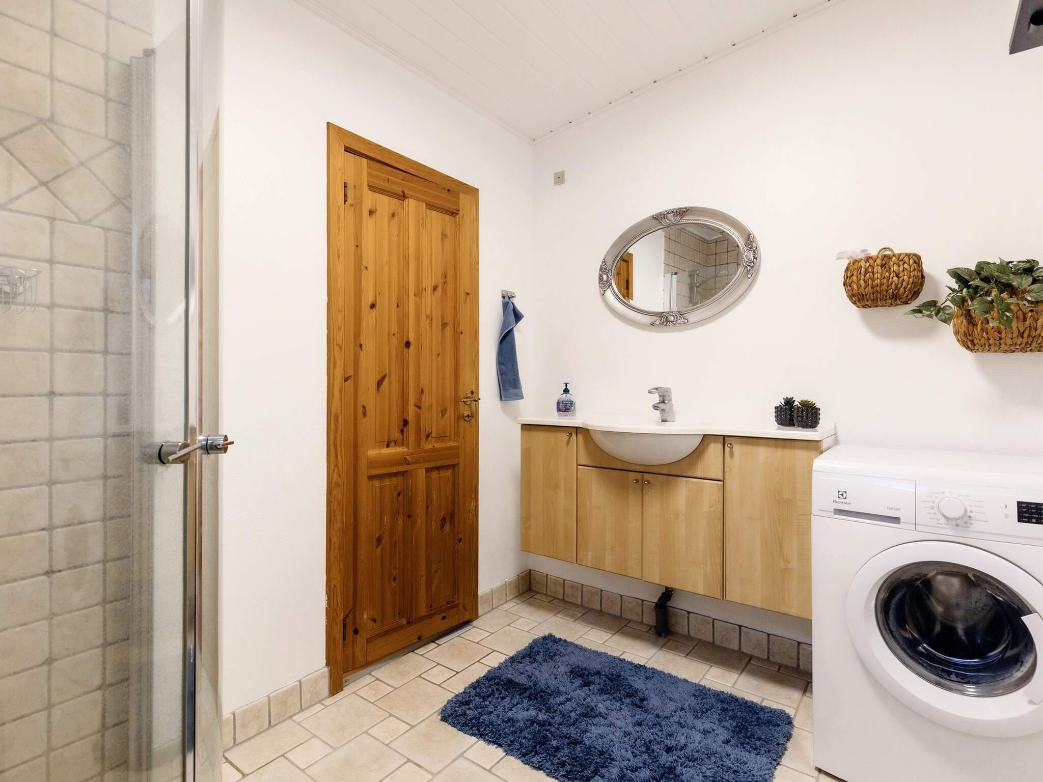 Außerdem gibt es ein Badezimmer mit Toilette, Waschbecken und Dusche im Haus sowie eine Waschmaschine.