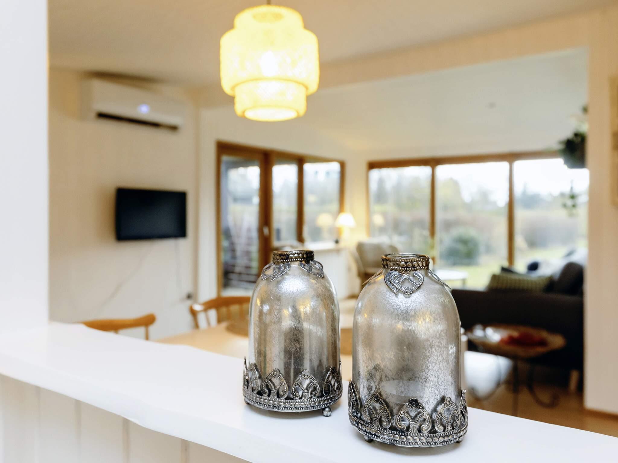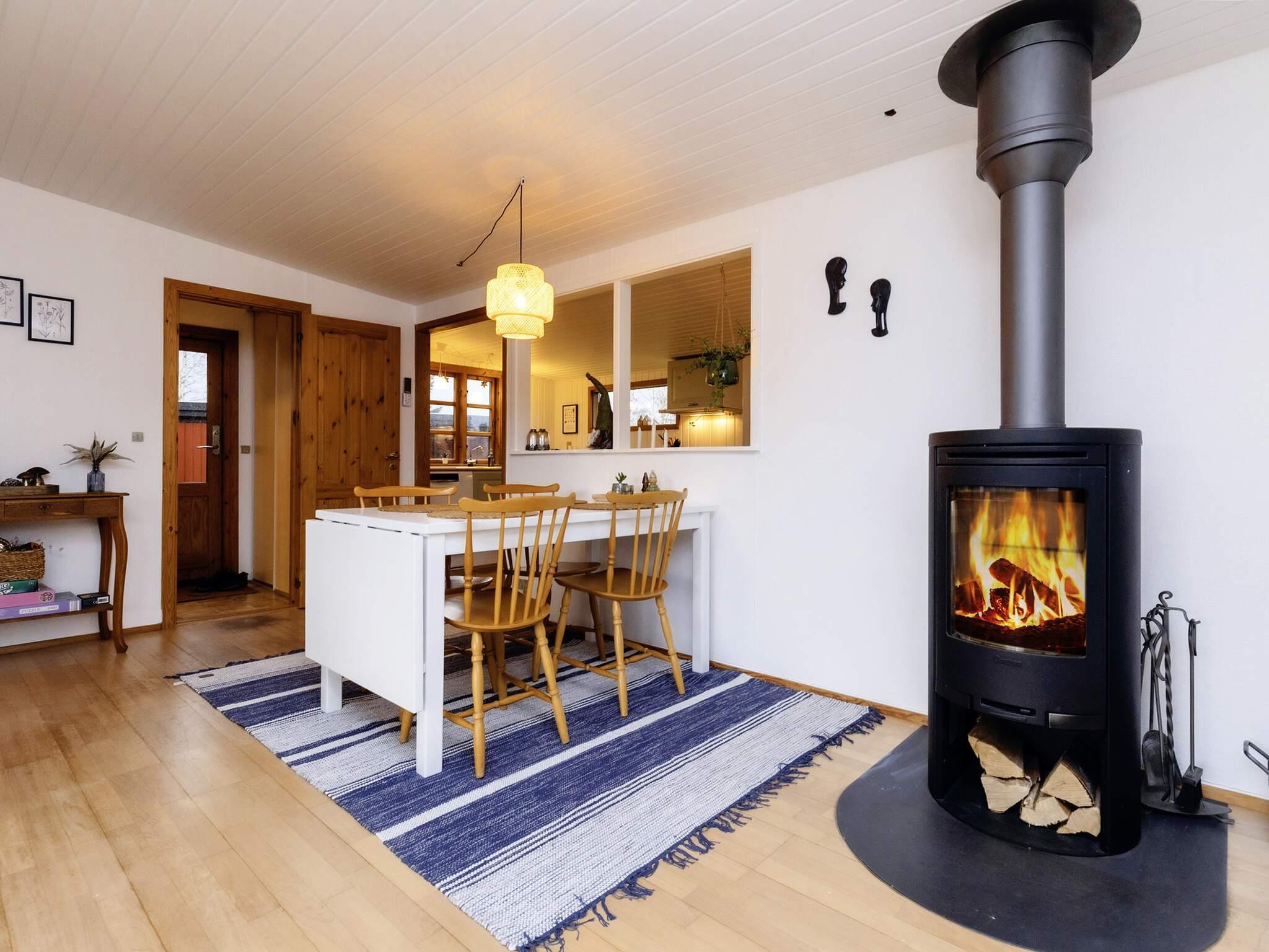 Im Inneren finden Sie ein geräumiges Wohnzimmer mit einem Fernseher mit dänischen und deutschen Kanälen. Ein Holzofen sowie eine Wärmepumpe sorgen das ganze Jahr über für angenehme Temperaturen im Haus. Es gibt auch eine Essecke sowie einen Hochstuhl für kleine Gäste.