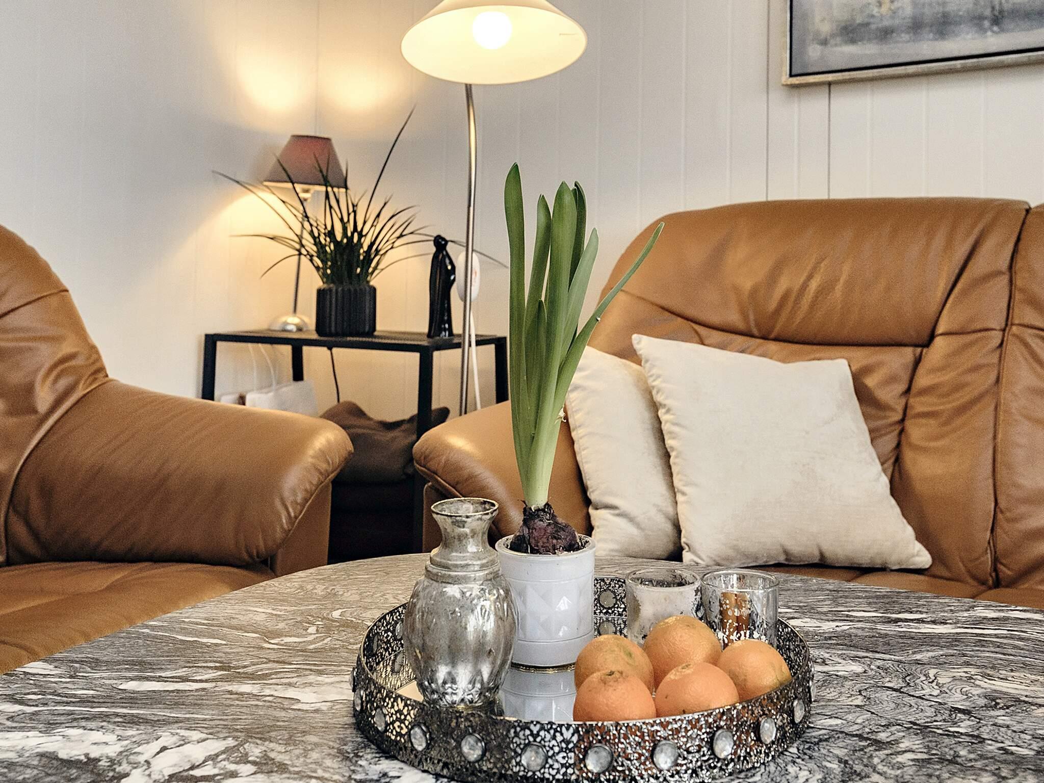 Das Wohnzimmer bietet direkten Zugang zur überdachten Terrasse mit Gartenmöbeln und einem Kühlschrank, sodass Sie Ihre Getränke kühl halten können. Hier können Sie Ihren Genuss geschützt vor Wind und Wetter verlängern. Die große Terrasse ist mit Gartenmöbeln und Sonnenliegen sowie einem Holzkohlegrill für herrliche Grillabende ausgestattet. Wer seinen Morgenkaffee bei Sonnenaufgang genießen möchte, findet selbstverständlich auch eine kleine Terrasse mit Gartenmöbeln seitlich am Haus. Nicht an Jugendgruppen vermietbar.