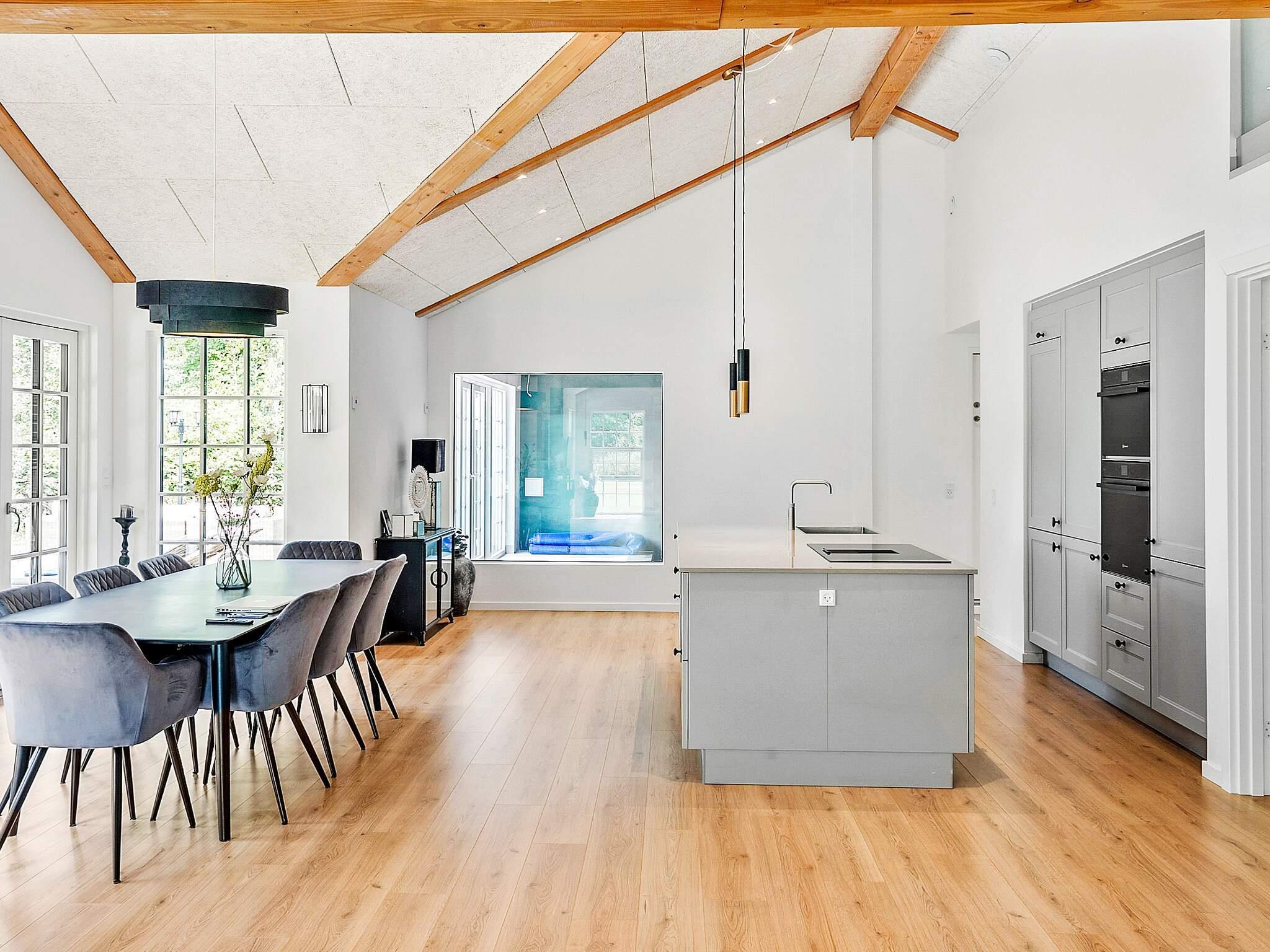 Der fantastische Küchen- und Essbereich ist der Ort, an dem sich Familie und Freunde zu unvergesslichen Mahlzeiten und gemütlichen Momenten treffen. Mit einer modernen Küche, einem Essbereich und bequemen Sofas wird dieser Raum schnell zu Ihrem Lieblingsort. Nicht zu vergessen der bezaubernde Pool, der von der Küche aus durch ein großes Fenster sichtbar ist und Ihrem Erlebnis eine besondere Note verleiht.