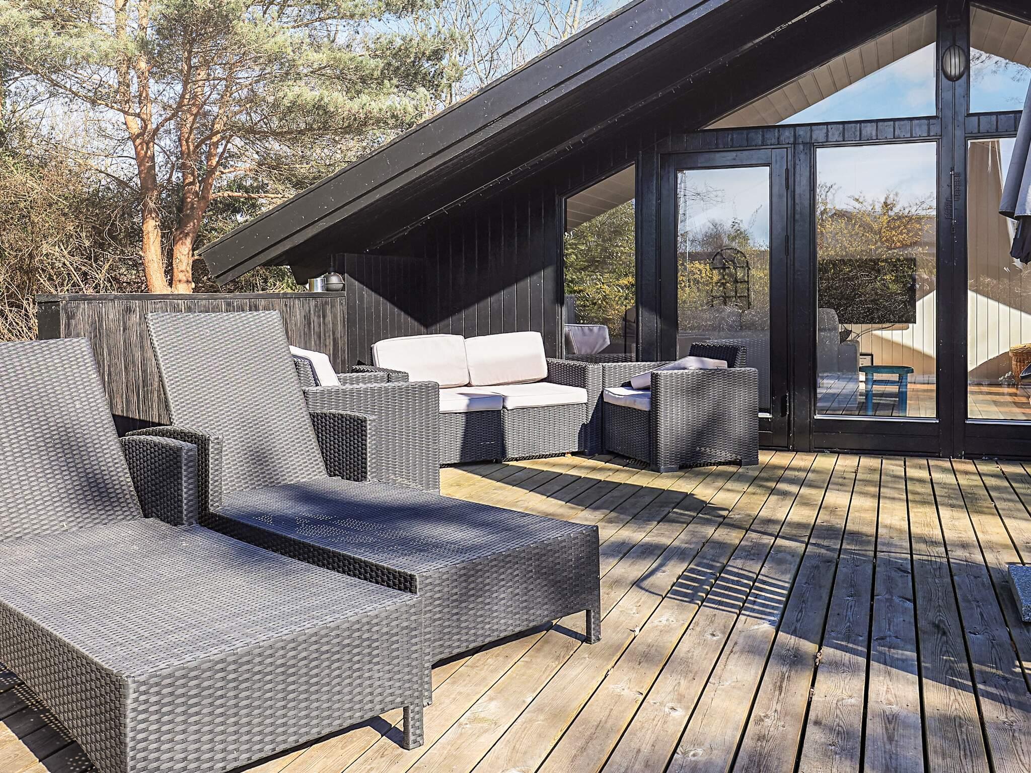 An gemütlichen und warmen Sommerabenden können Sie auf einer der beiden Holzterrassen Platz nehmen, die zur Hälfte überdacht sind und auf denen neben einem Holzkohlegrill auch Gartenmöbel und Sonnenliegen bereitstehen. Gemütlicher großer Garten mit Platz zum Ballspielen und für spielende Kinder.