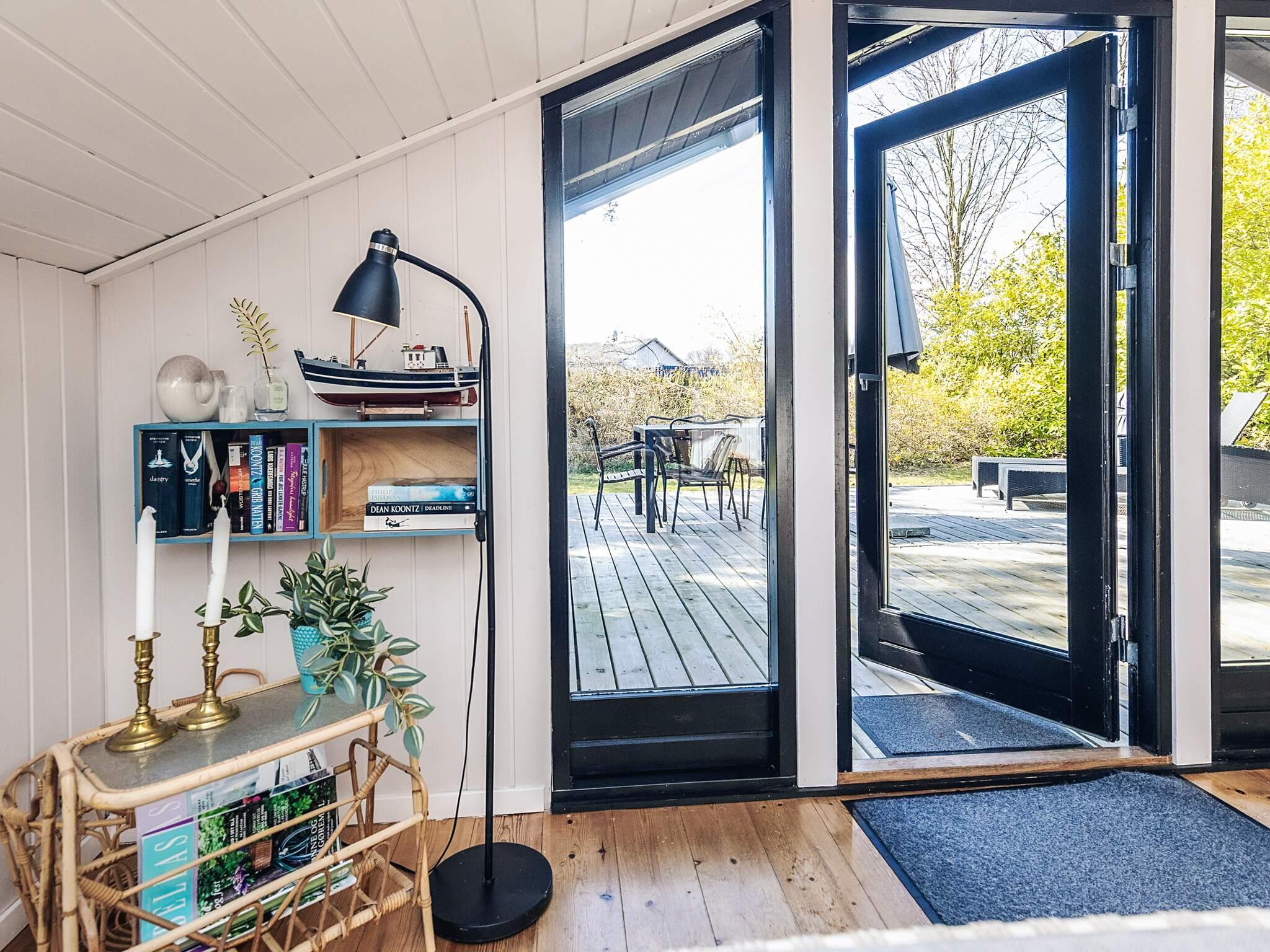 Das Wohnzimmer verfügt über einen Smart-TV und Internet sowie fantastisches Licht durch die Oberlichter über einer der Sitzgarnituren. Vom Wohnzimmer aus gelangt man ebenfalls direkt hinaus auf die große Holzterrasse.
