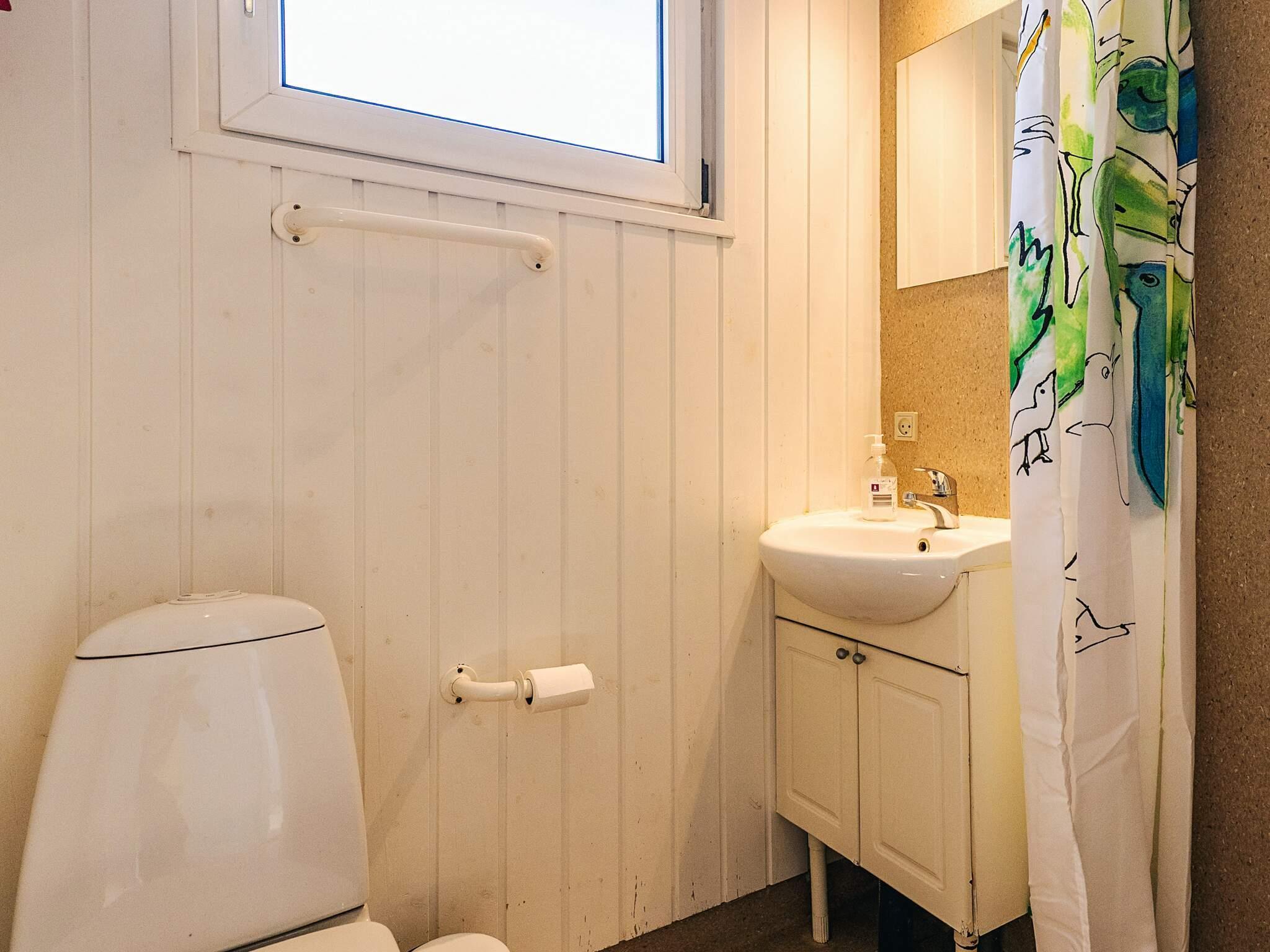 Das Ferienhaus verfügt über zwei Schlafzimmer mit je einem Doppelbett, ein Zimmer mit zwei Einzelbetten und ein drittes Zimmer mit einem Etagenbett für zwei Personen. Es gibt zwei Badezimmer mit WC, Dusche und Waschbecken, eines davon zusätzlich mit Waschmaschine und Trockner.