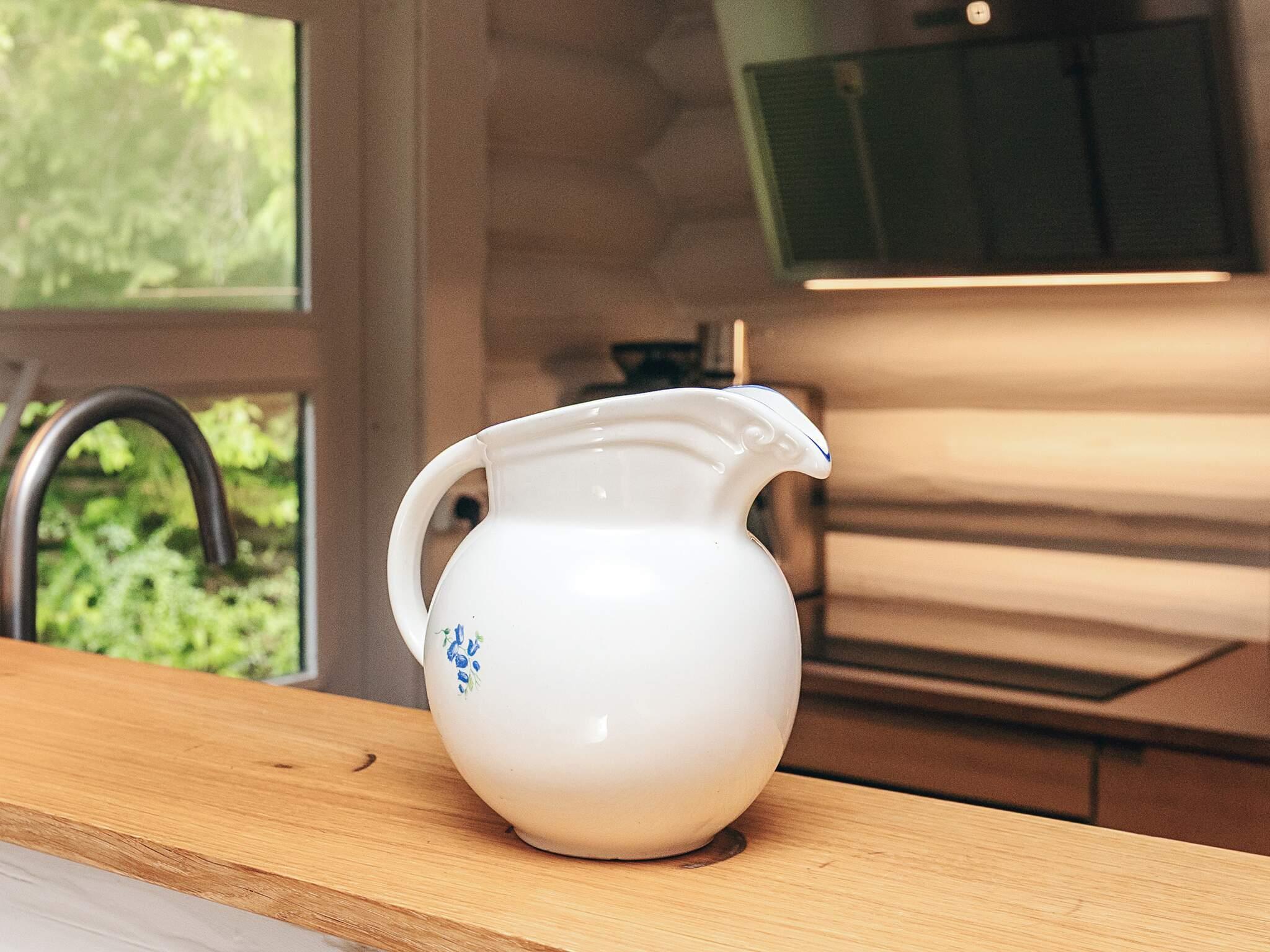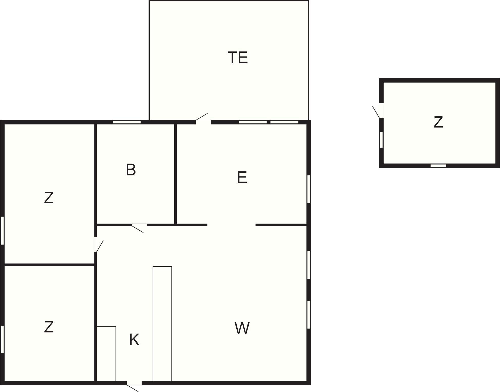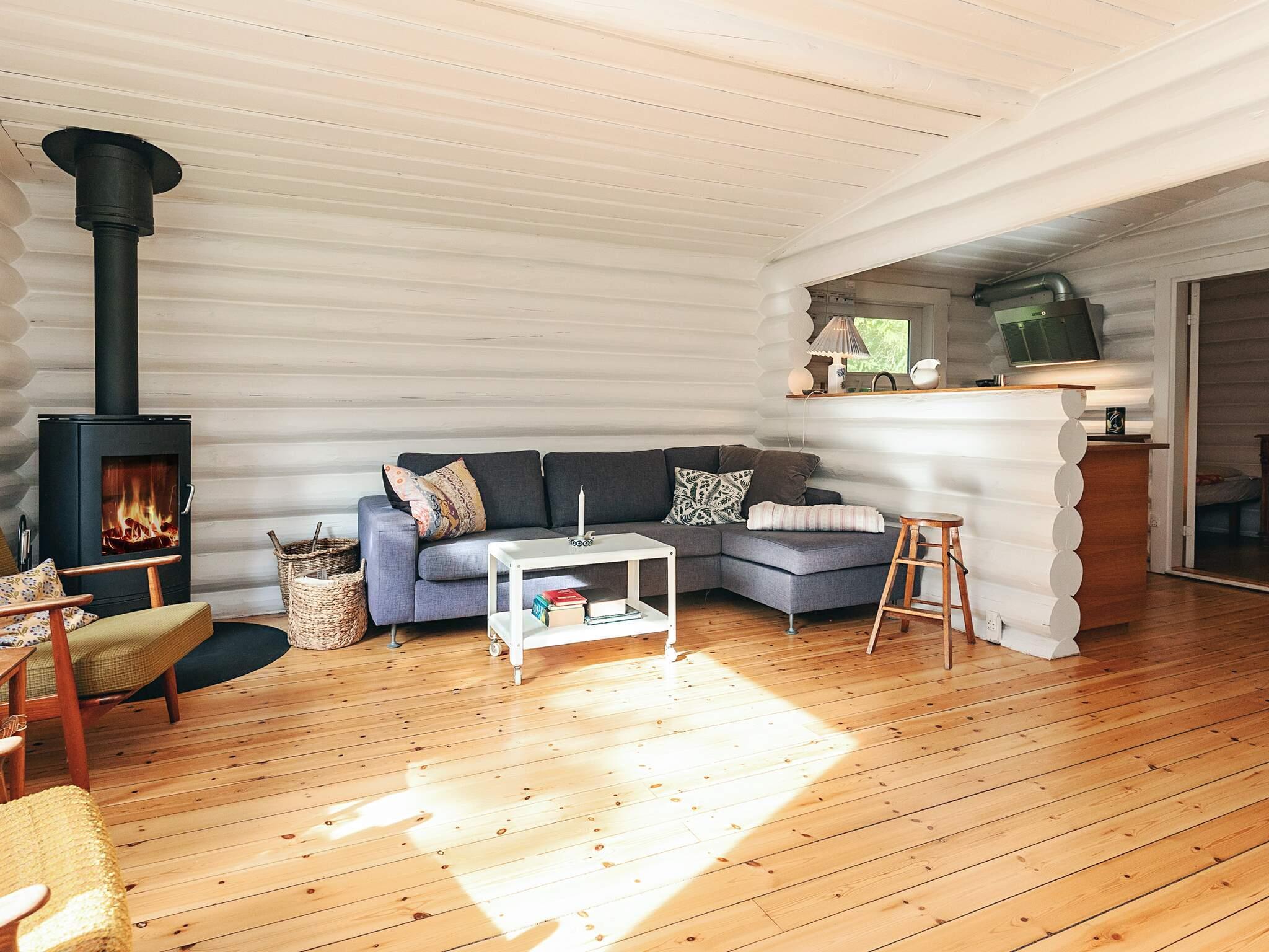Das gemütliche Wohnzimmer ist mit einer modernen Küche kombiniert, die über einen Induktionsherd, einen separaten Backofen, einen Kühlschrank mit Gefrierfach und einen Geschirrspüler verfügt. Das Wohnzimmer verfügt über einen Smart-TV und WLAN sowie eine Luft-Luft-Wärmepumpe und einen Holzofen für gemütliche Tage zum Entspannen. Es gibt zwei Schlafzimmer, eines mit Doppelbett, das andere mit zwei Einzelbetten, und einen Anbau mit zwei Einzelbetten. Das Badezimmer des Ferienhauses verfügt über Toilette, Waschbecken und Dusche.