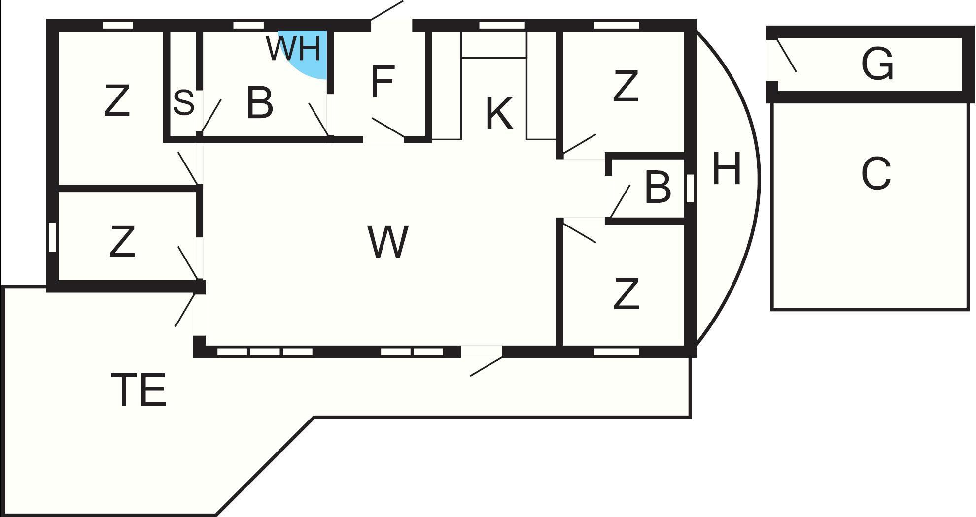 Ferienhaus mit großem, hellem Wohnbereich mit integrierter Küche und Aussicht zum Garten. Ein Holzofen sowie Fernseher und gratis WLAN stehen Ihnen zur Verfügung. Großes Badezimmer mit Whirlpool und Sauna. Das Ferienhaus hat zudem eine klimafreundliche Wärmepumpe.