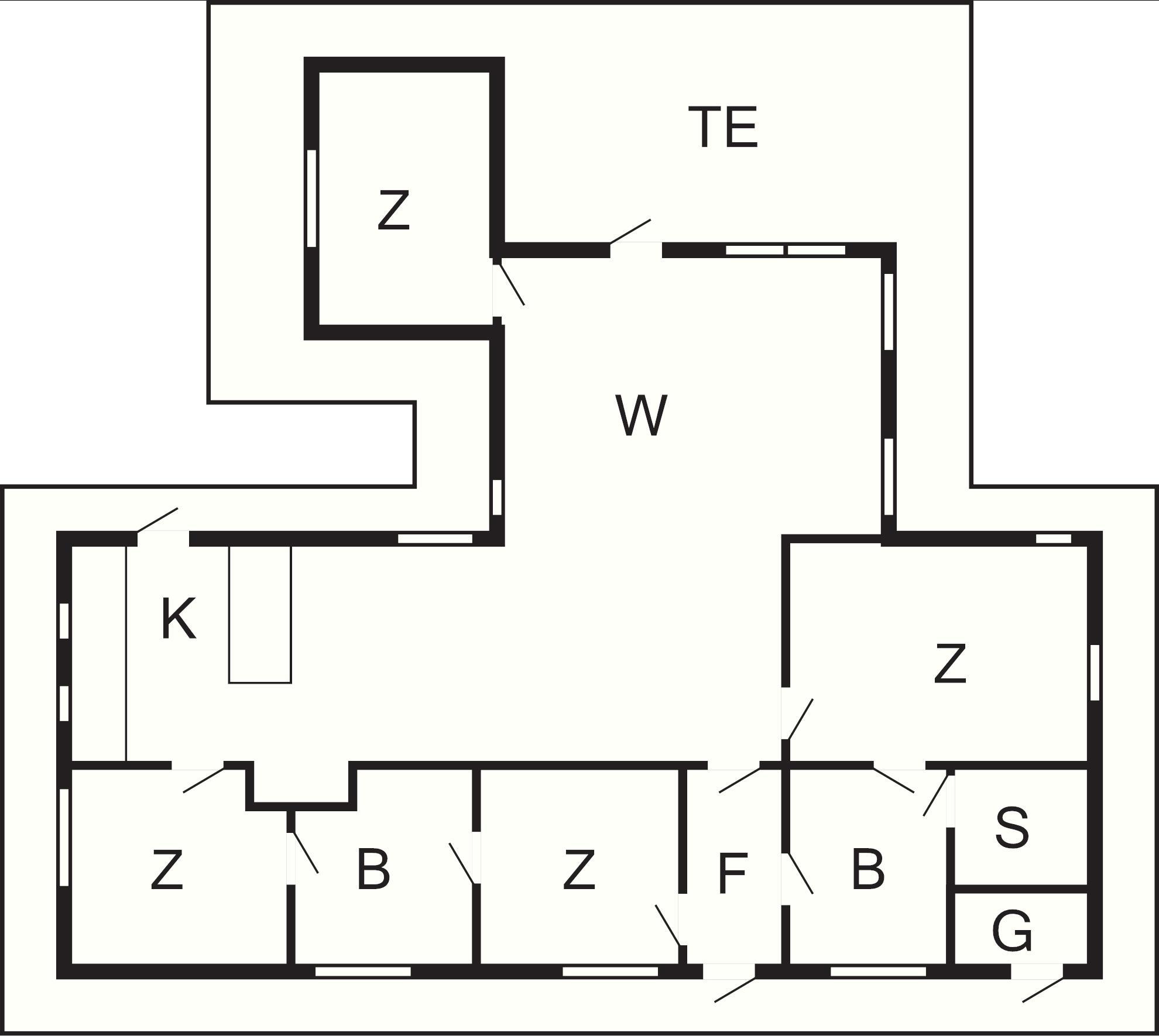 4 Schlafz.: (1DB)+(1DB)+(1DB+1K)+(1DB+1K), Kinderbett