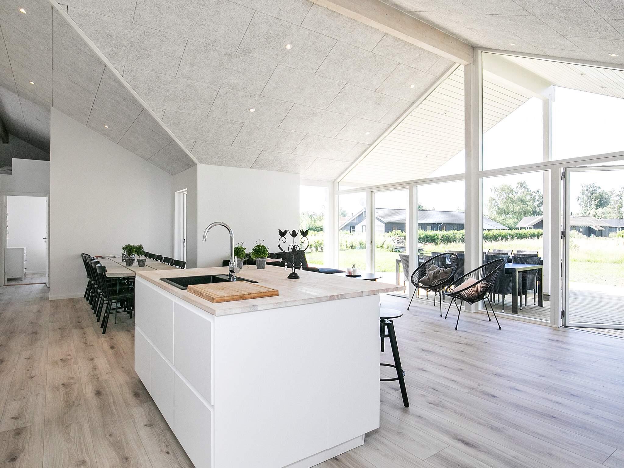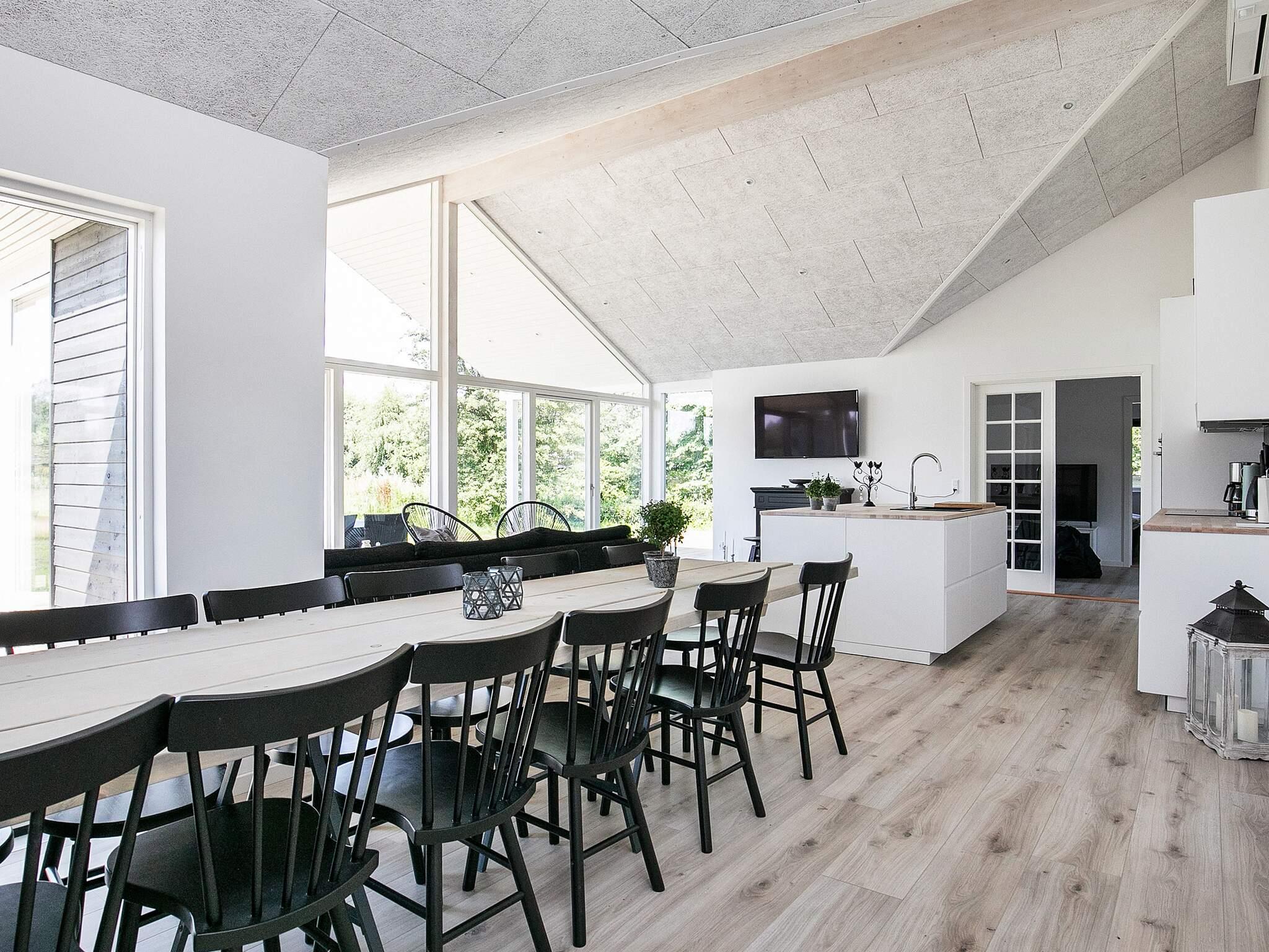 Überall im lichtdurchfluteten Ferienhaus gibt es modernes Mobiliar und ansprechend Details zu entdecken. Offener Küchen-/Wohnbereich für das Familienleben, inklusive Bio-Kamin und deutschen TV-Sendern zur Auswahl im TV. Zeitgemäße Küchenausstattung inkl. Ceranfeld, Backofen, Dunstabzugshaube, Mikrowelle und Kühlschrank mit Gefrierfach, zudem Weinkühler, Wasserkocher und Toaster vorhanden.