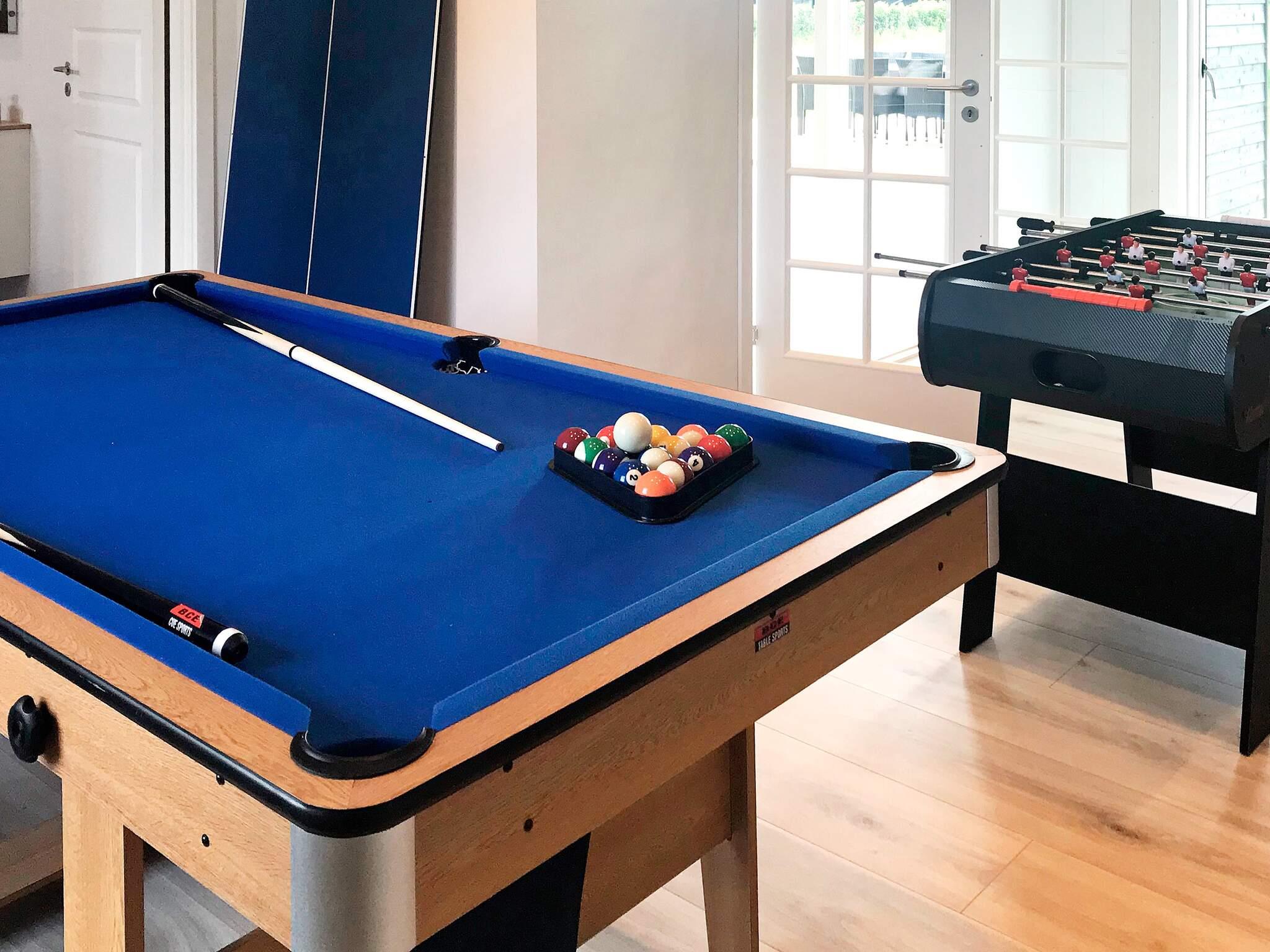 Im hellen Aktivitätsraum ist Platz für Spiel und internen Wettbewerb am Billardtisch, Tischkicker oder vor der PlayStation 3 (bringen Sie Ihre eigenen Spiele mit!) und der Nintendo Wii. Im Haus auch größeres Badezimmer inkl. Whirlpool und Zugang zur Sauna, sowie zweites Bad mit Dusche/WC. Praktischer Waschtrockner im Haus. Eine energieeffiziente Wärmepumpe sorgt sowohl im Küchen-/Wohnbereich als auch im Aktivitätsraum für ein angenehmes Innenklima.