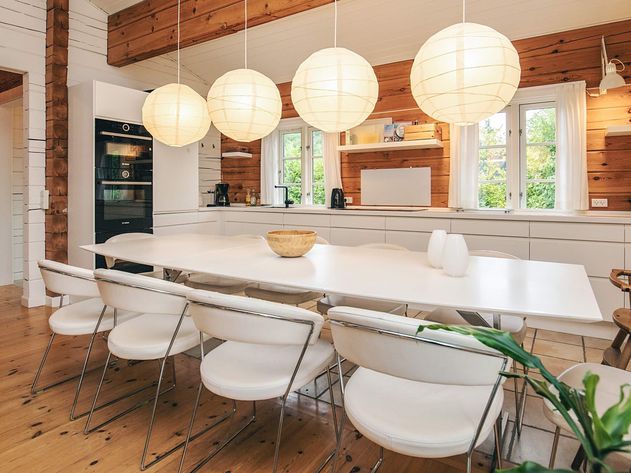 Die Küche ist gut ausgestattet und bietet alles, was Sie für Ihren Urlaub benötigen. Sie ist zum Wohnzimmer hin offen. Hier können Sie Ihren Urlaub im gemütlichen Essbereich genießen oder auf dem Sofa vor dem Holzofen und dem Flachbildfernseher entspannen. Das Haus verfügt über Fußbodenheizung in allen Wohnbereichen und kostenloses Internet – ideal für Sommer- und Winterurlaub.