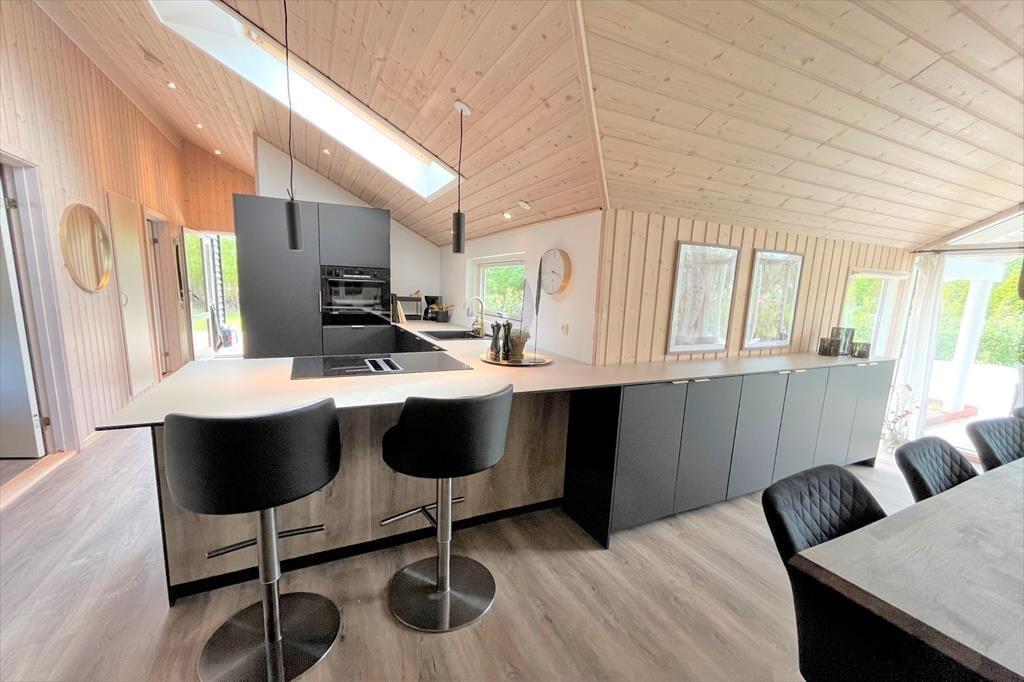Gelegen in einem guten Ferienhausgebiet, in der Nähe des Marktplatzes, der Einkaufsmöglichkeiten und nicht zuletzt Dänemarks bestem Strand.