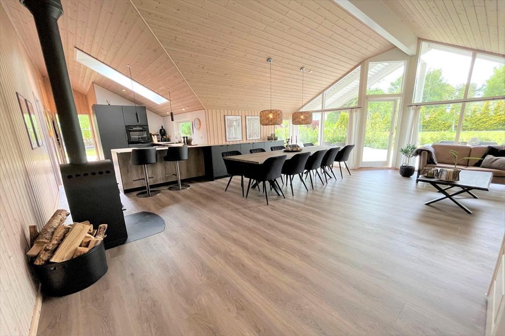 Das Ferienhaus ist mit 4 guten und schönen Schlafzimmern ausgestattet, alle Schlafzimmer sind alle Doppelzimmer mit Doppelbetten, sowie einem großen Dachboden, auf dem 2 Personen schlafen können. Darüber hinaus ist das Haus mit Zugang zu einem kleinen guten Eingang ausgestattet, in dem sich auch das einzige Badezimmer des Hauses befindet, das WC, Dusche, Waschmaschine und Trockner enthält. Darüber hinaus bietet das Ferienhaus die große offene Wohnküche, wo Sie an einem Ende die schöne und moderne Küche haben, in offener Verbindung mit dem Wohnzimmer, das einen Sofabereich und einen Essbereich hat. Auch vom Wohnzimmer aus gelangt man auf die große und schöne Terrasse sowie in den Garten. Vom Wohnzimmer gibt es auch einen Eingang zum Aktivitätsraum des Hauses, der sowohl einen Billardtisch als auch eine Tischtennisplatte enthält, beim Aktivitätsraum finden wir Badezimmer Nummer 2 mit WC, Dusche, Whirlpool und einer köstlichen Sauna.