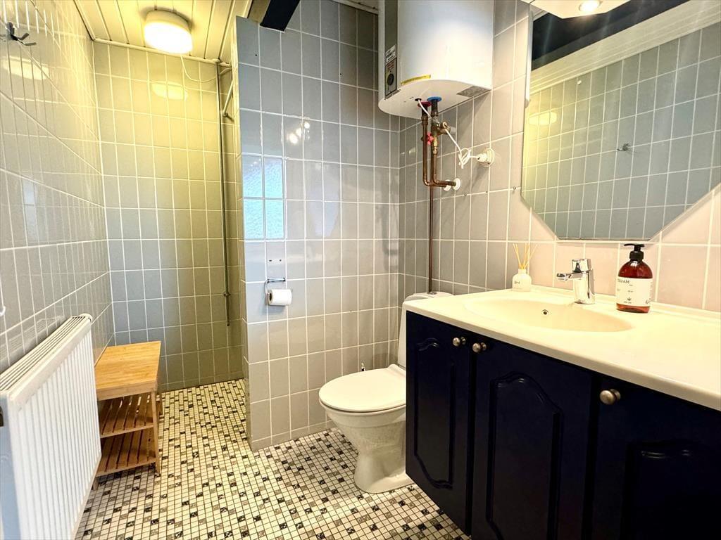 Die Wohnung besteht aus einer Eingangshalle, vom Eingang aus gelangt man in ein Badezimmer mit Toilette, Dusche und Waschbecken. Darüber hinaus gibt es im Erdgeschoss ein Schlafzimmer mit Doppelbett, Kleiderschrank und Zugang zur Terrasse. Im ersten Stock befindet sich ein weiteres Schlafzimmer mit zwei Einzelbetten. Schließlich bietet die Wohnung eine offene Küche mit Zugang zum Wohn- und Essbereich, von wo aus auch Zugang zur Terrasse besteht.