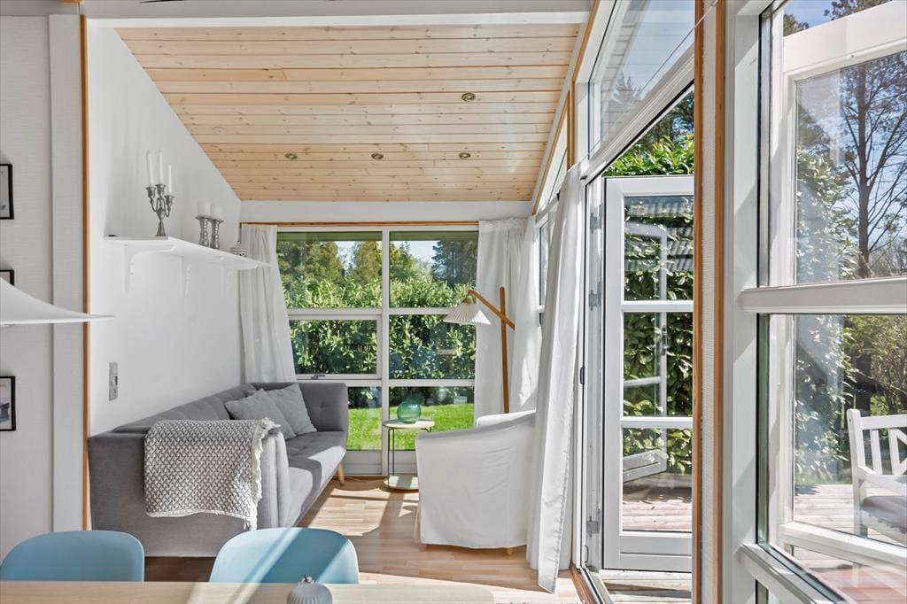 Das Sommerhaus bietet eine Eingangshalle mit Zugang zur offenen Küche des Hauses. Hier gibt es einen Essbereich und eine gemütliche Ecke. Von hier aus gelangt man auf die wunderschönen Terrassen des Hauses. Darüber hinaus bietet das Haus ein großes, schönes Wohnzimmer mit einem Holzofen, 2 gute Schlafzimmer mit einem Doppelbett in einem Schlafzimmer und einem Etagenbett im anderen Schlafzimmer. Vom Wohnzimmer aus hat man Zugang zur Terrasse und zum Anbau des Hauses. Der Anbau verfügt über 2 Schlafplätze mit 2 Einzelbetten. Schließlich bietet das Cottage ein Badezimmer mit Toilette, Dusche und Waschbecken.