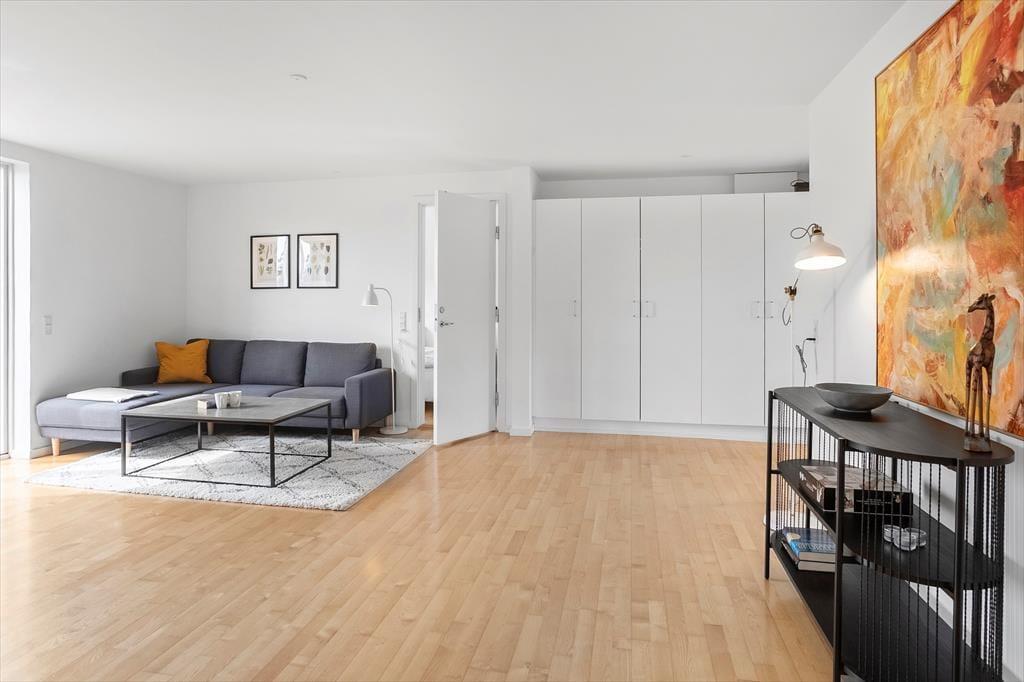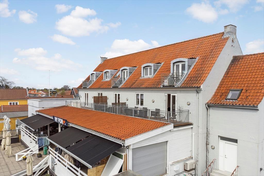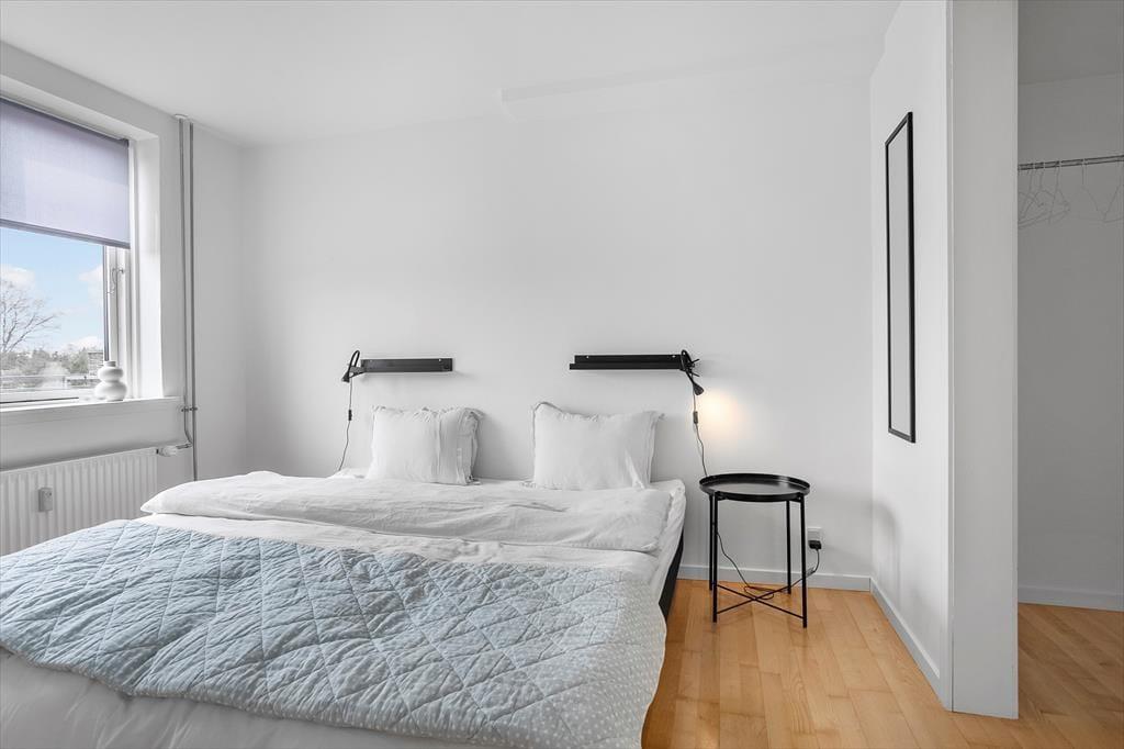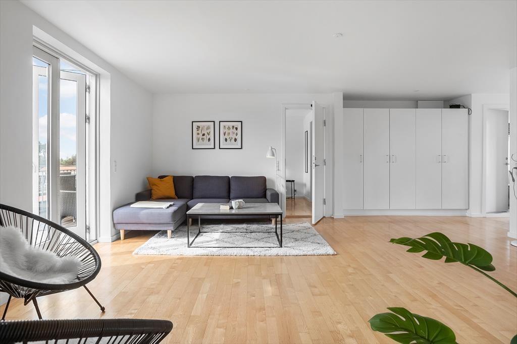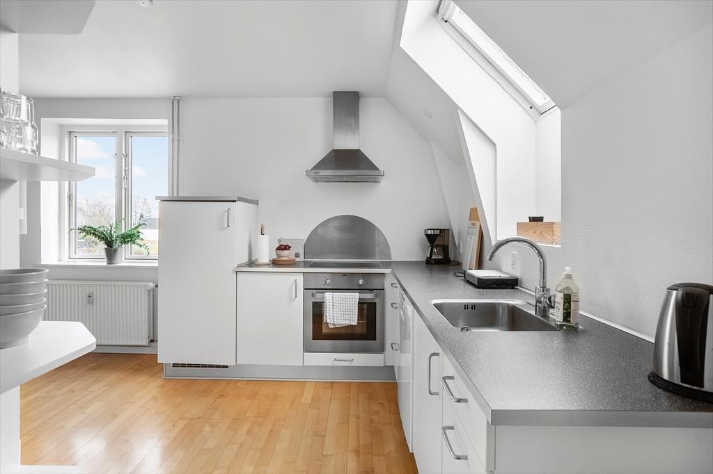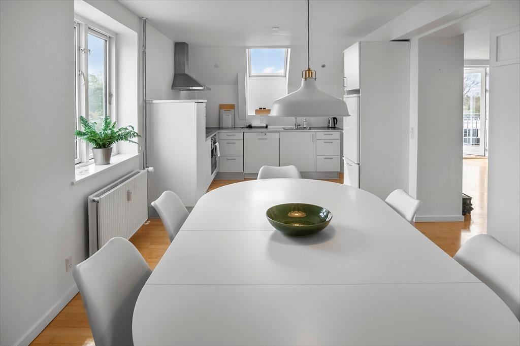 Die Ferienwohnung verfügt über einen Vorraum mit Zugang zu einem Badezimmer mit WC, Waschbecken und Dusche sowie zu einem Schlafzimmer mit 2 Einzelbetten. Zusätzlich gibt es noch ein weiteres Schlafzimmer mit 2 Einzelbetten, die zusammengeschoben sind. Am Ende des Eingangsbereichs gelangen Sie in die schöne und helle Wohnküche der Wohnung, wobei der Küchenbereich alles bietet, was das Herz begehrt, während der restliche Raum über einen Esstisch mit Stühlen und einem Sofa verfügt. Von der Wohnküche aus hat man auch Zugang zur schönen Terrasse der Wohnung mit Aussicht auf Marielyst Torv.