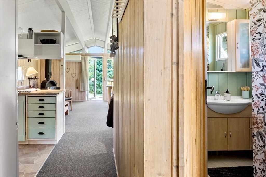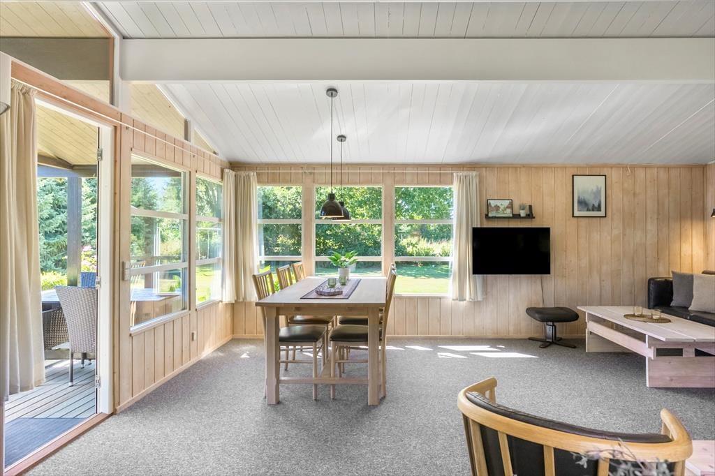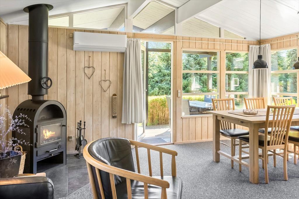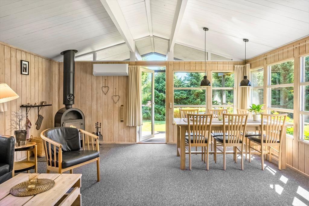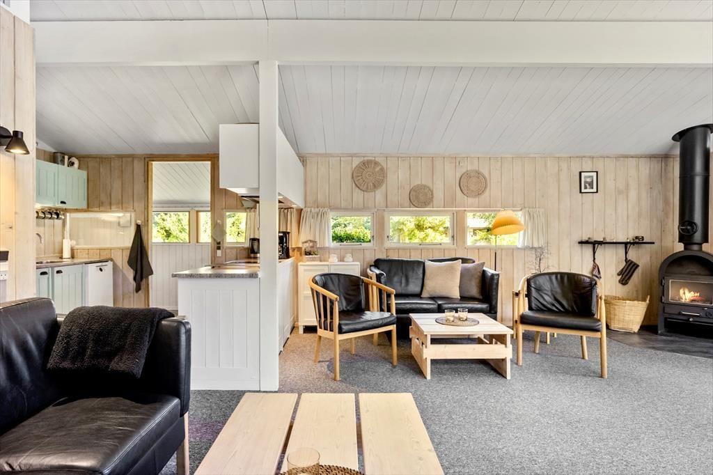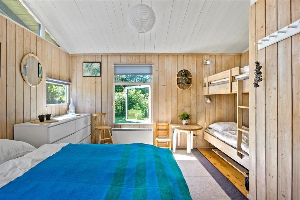Dieses schöne Ferienhaus bietet einen Eingangsbereich mit Waschmaschine, zwei Schlafzimmer im Haupthaus, eines mit Doppelbett und das andere mit Etagenbett. Im Nebengebäude befinden sich vier Schlafplätze mit Doppelbett und Etagenbett. Das Haus verfügt über ein Badezimmer mit WC und Dusche sowie ein Gäste-WC mit WC. Die schöne offene Küche mit Essbereich und Sofaecke bietet Zugang zur schönen Terrasse.