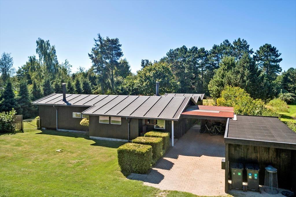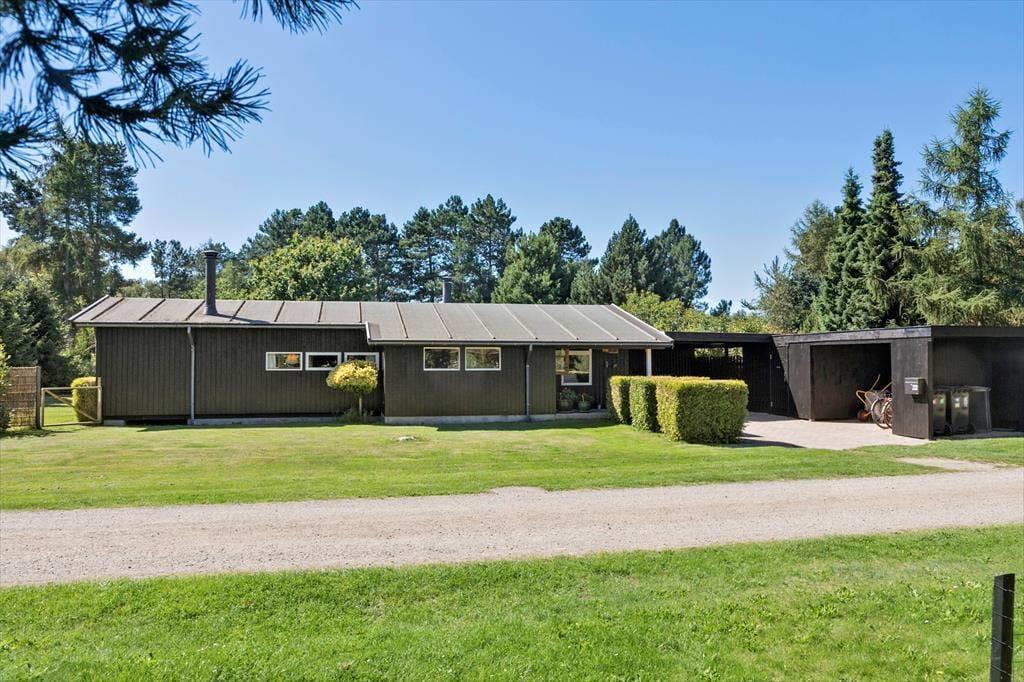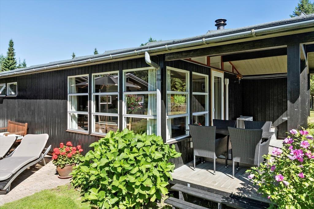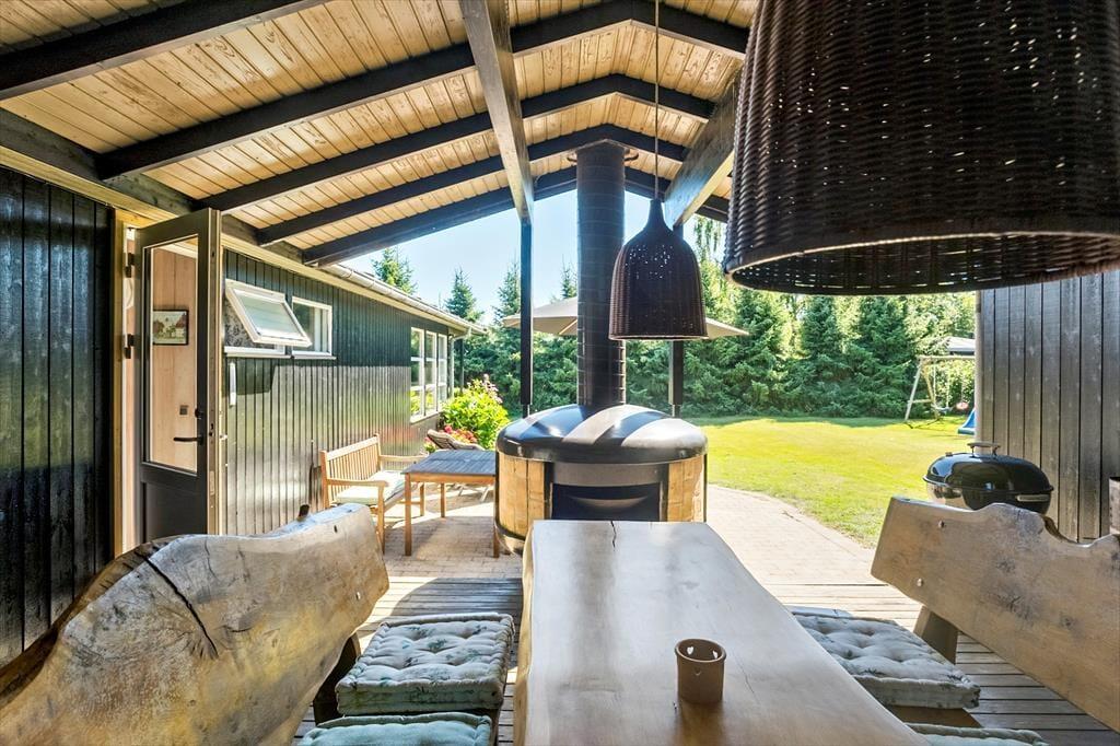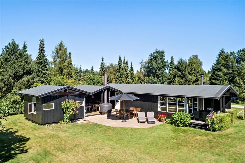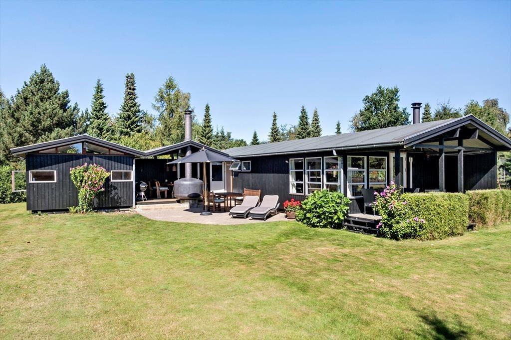 Das Ferienhaus liegt auf einem 1.021 m² großen Grundstück und ist von attraktiven Außenbereichen umgeben. Mehrere einladende, teilweise überdachte Terrassen mit Gartenmöbeln und Grill bieten den idealen Rahmen für gemütliche Mahlzeiten im Freien.