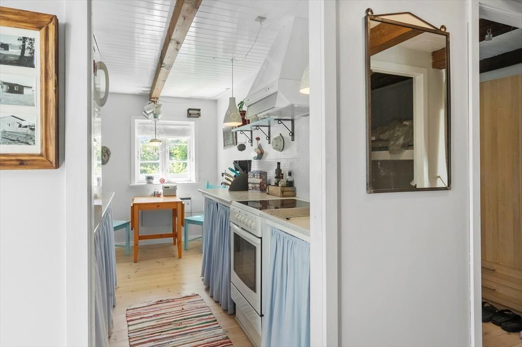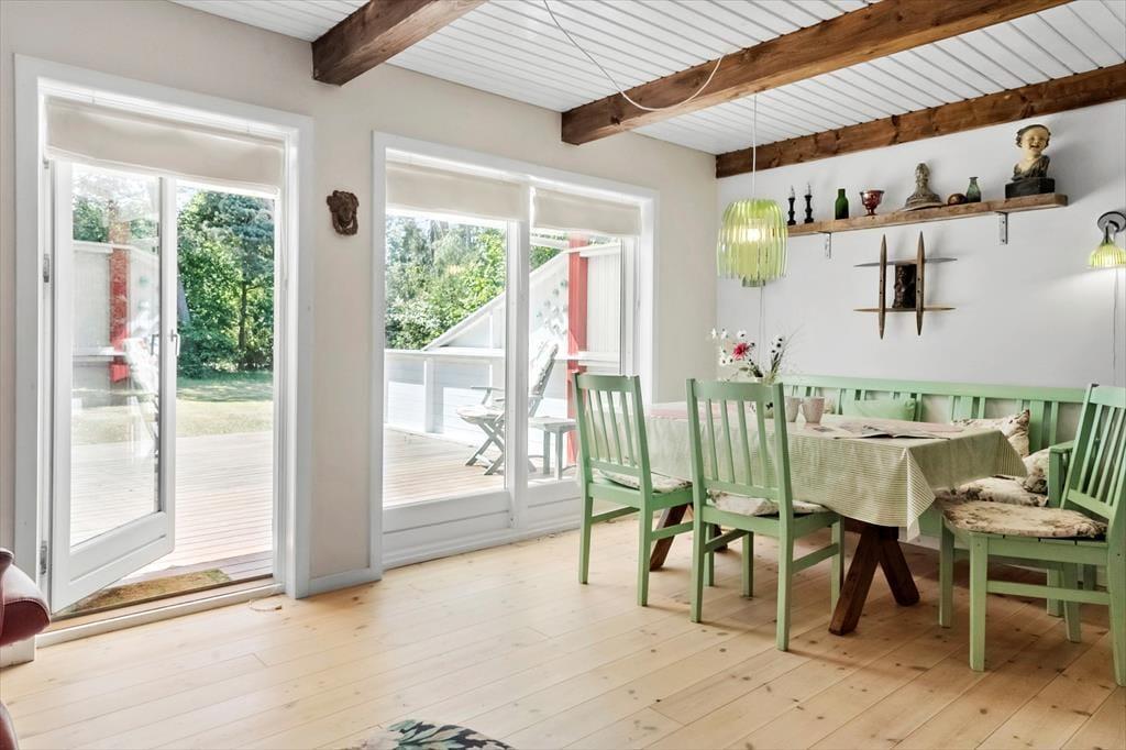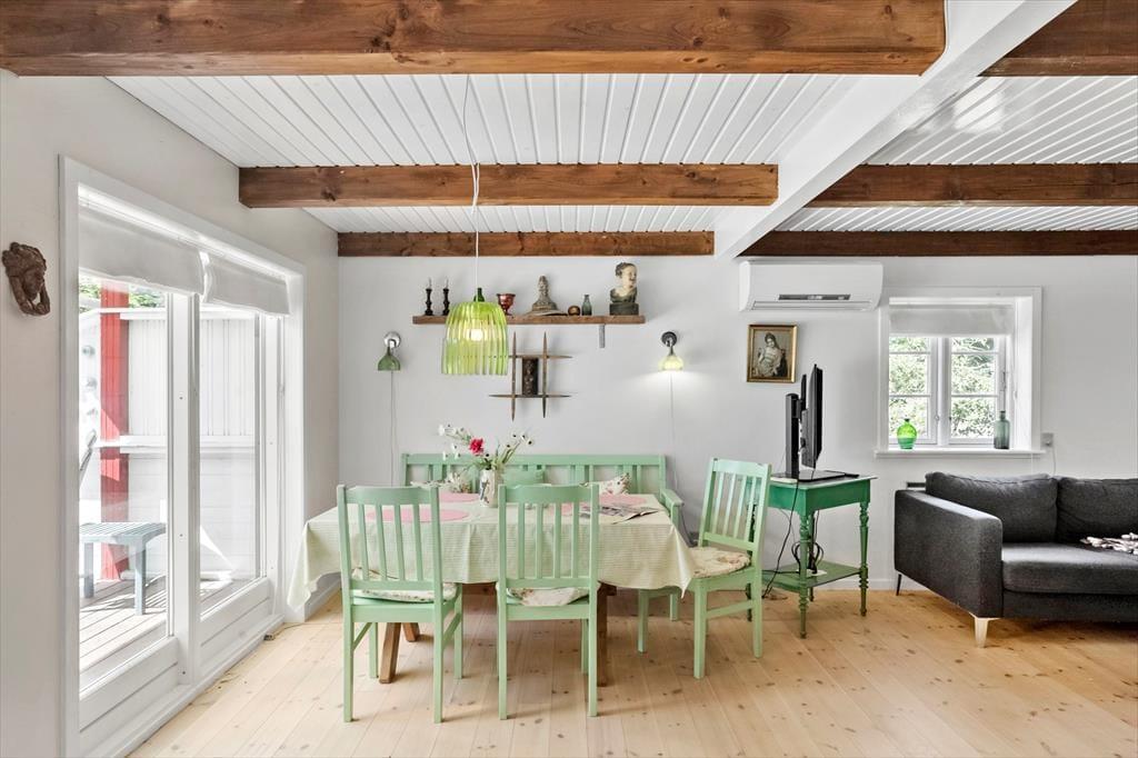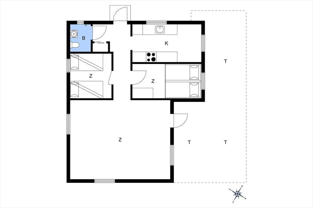 Dieses gemütliche Ferienhaus bietet eine gut ausgestattete Raumaufteilung, die perfekt zur entspannten Urlaubsatmosphäre passt.