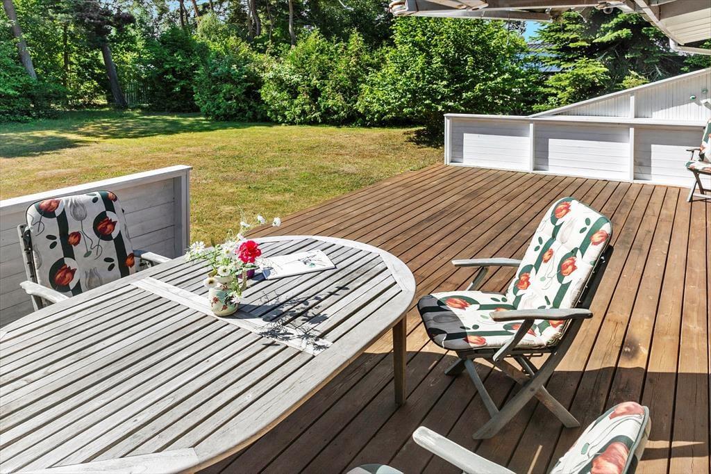 Das Ferienhaus befindet sich auf einem 1008 m² großen Grundstück und bietet eine schöne Holzterrasse mit Gartenmöbeln und Grill – ideal für gemütliche Mahlzeiten unter freiem Himmel. Der dazugehörige Garten ist wunderschön und großzügig und bietet viel Platz zum Spielen, Ballspielen und Entspannen für die ganze Familie.