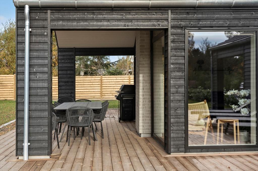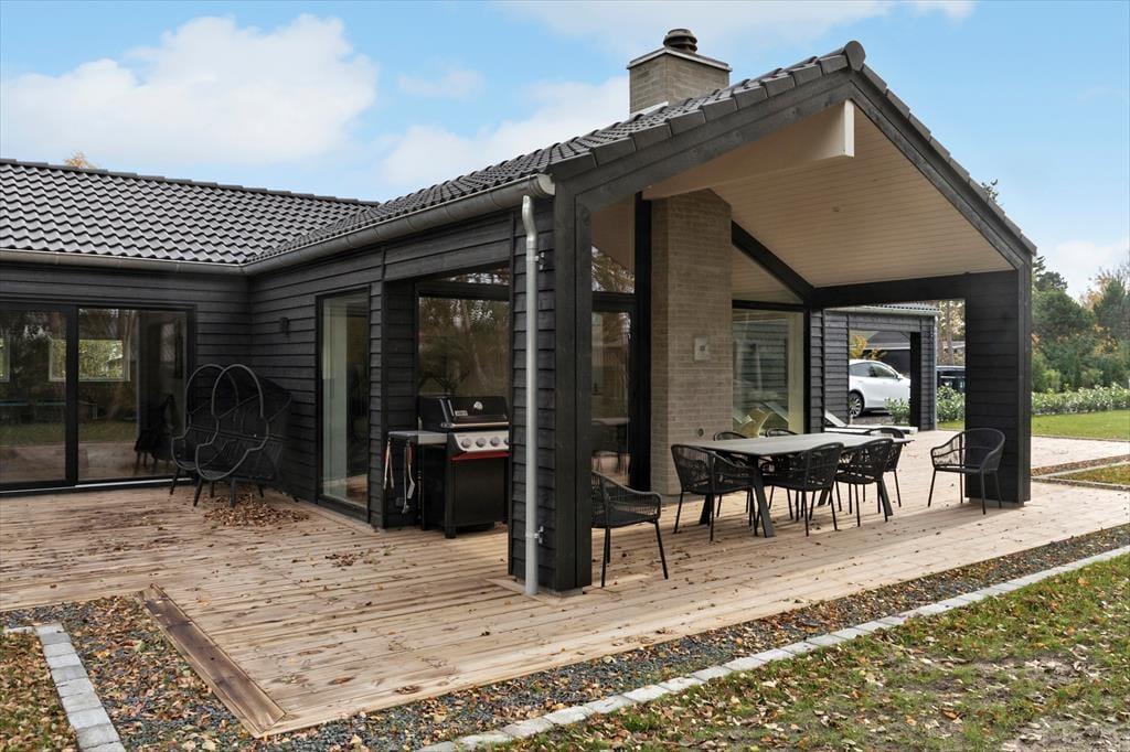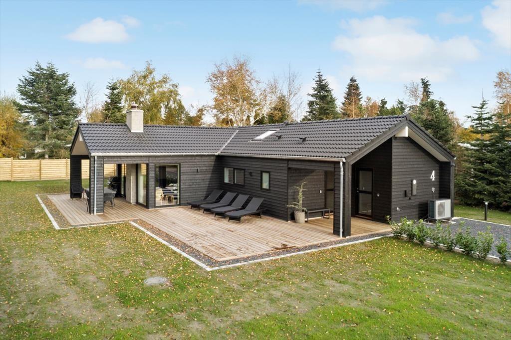 Das Sommerhaus liegt auf einem schönen Grundstück von 1.138 m² und bietet viel Platz zum Entspannen und für Aktivitäten. Die 100 m² große Holzterrasse ist mit Gartenmöbeln, Sonnenliegen und einem Grill ausgestattet – ideal für gemütliche Mahlzeiten und entspannte Momente in der Sonne. Darüber hinaus lädt eine großzügige Rasenfläche zum Spielen, Ballspielen und für jede Menge Outdoor-Spaß für Kinder und Erwachsene ein.