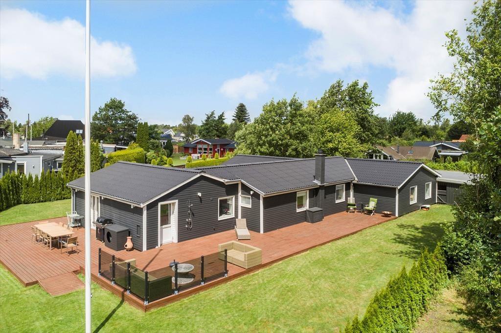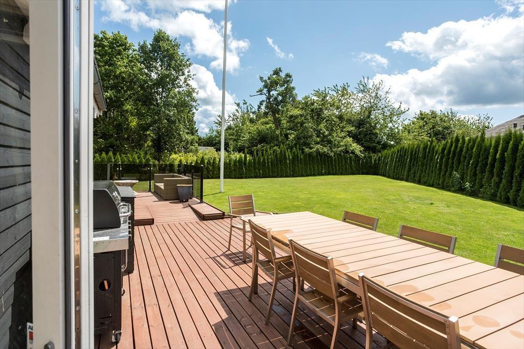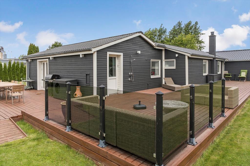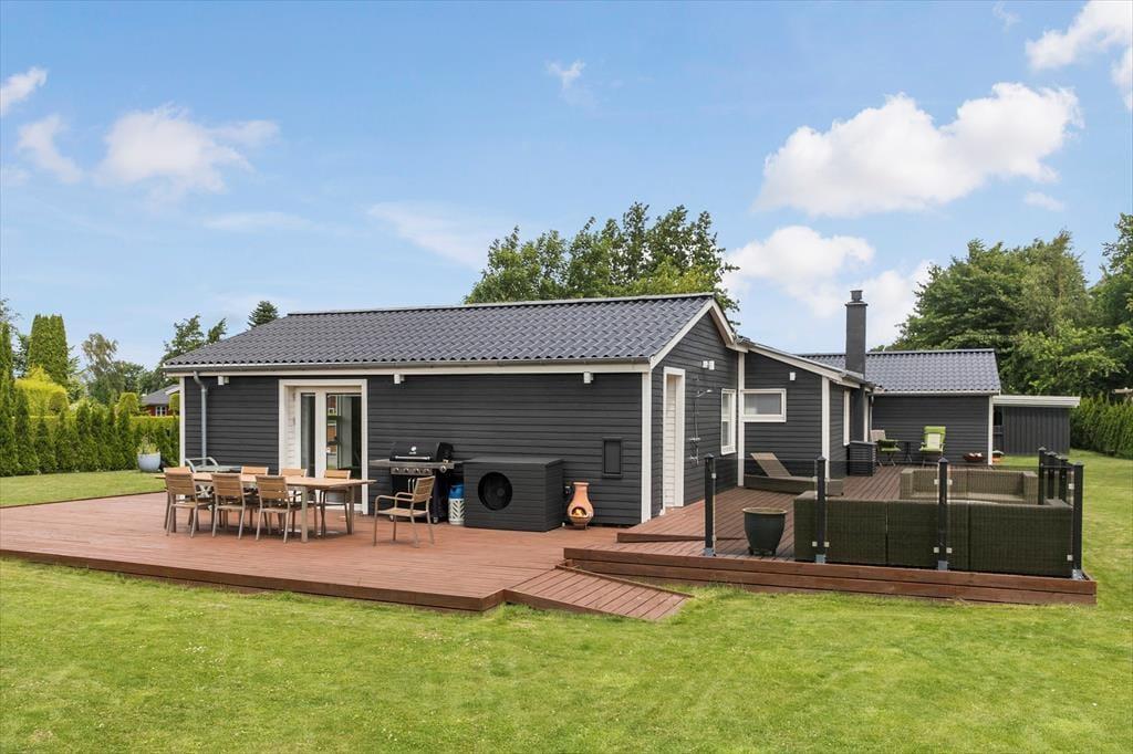 Das Ferienhaus verfügt über eine schöne, große Holzterrasse mit Gartenmöbeln, Grill und Sonnenliegen. Auf der Terrasse befindet sich auch eine Außendusche. Darüber hinaus lädt eine große Rasenfläche zum Verweilen ein.