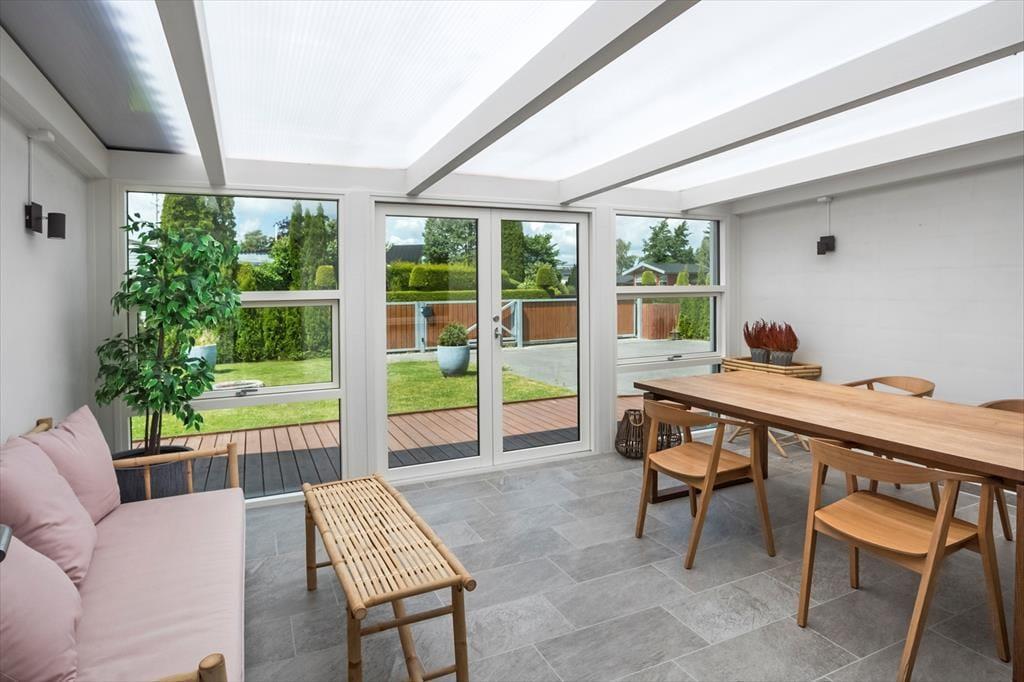 Das Ferienhaus verfügt außerdem über einen charmanten Wintergarten, der das ganze Jahr über zum Entspannen einlädt, sowie einen praktischen Hauswirtschaftsraum mit Waschmaschine und Trockner.