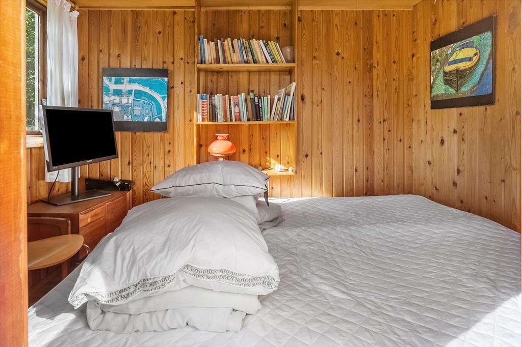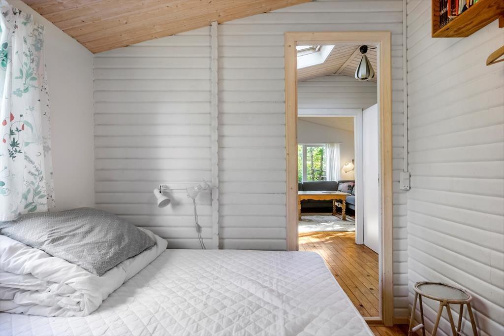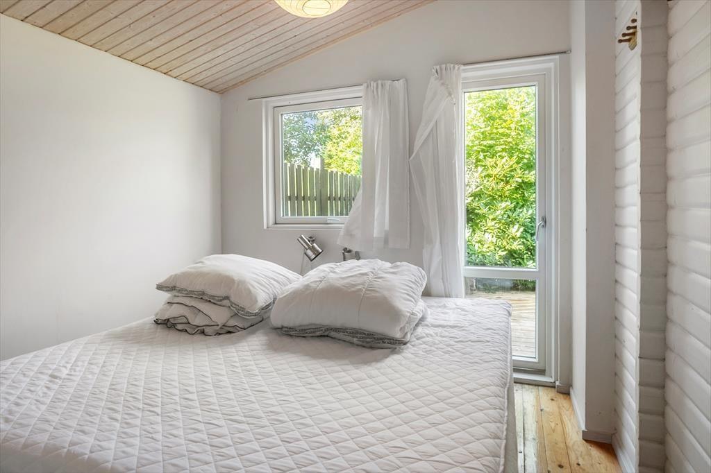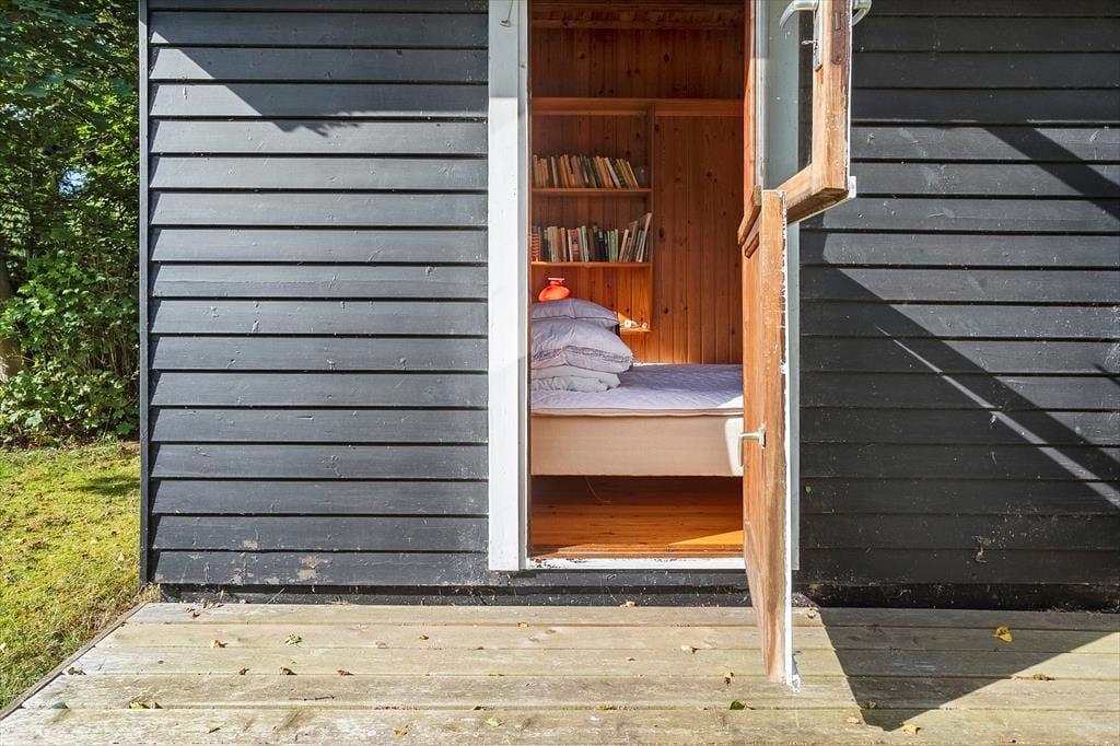 Vom Wintergarten aus gelangt man auf die Terrasse und in den Anbau. Dort befinden sich zwei Schlafplätze mit je einem Doppelbett. Das Ferienhaus verfügt über ein Badezimmer mit WC, Dusche und Waschbecken.
